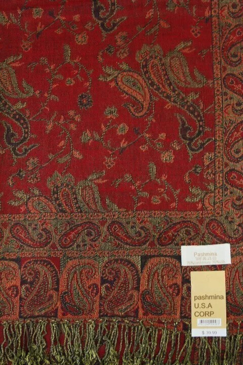 Pashmina Scarf Shawl Wrap-Paisley Black Red;Silk Cashmere.Soft Trendy