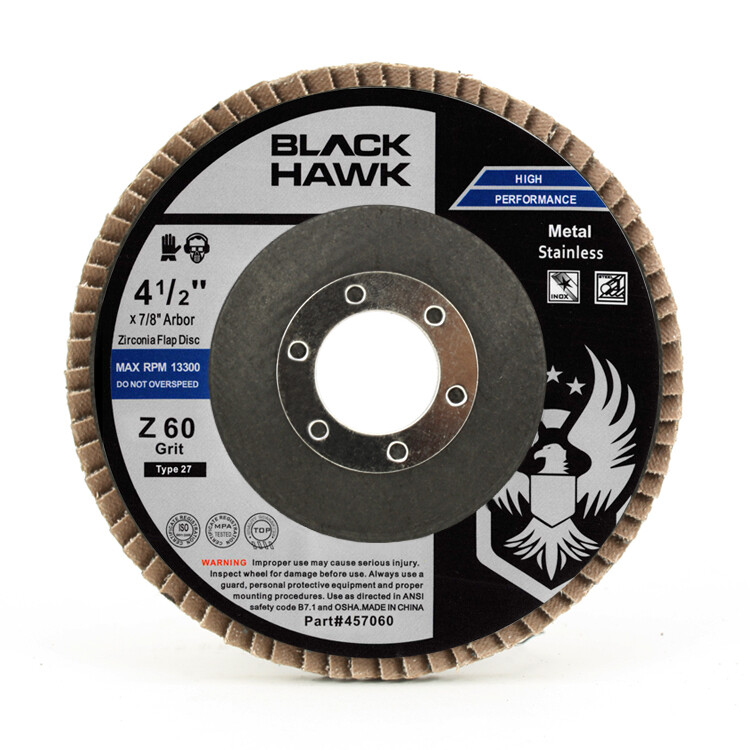 50 Pack 4.5 x 7/8 Black Hawk 60 Grit Zirconia Flap Disc Grinding Wheels T27