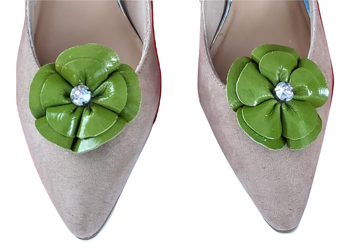 Bridal Wedding Prom Green Rose Leather Shoe Clip Dress Formal Wear Accessory