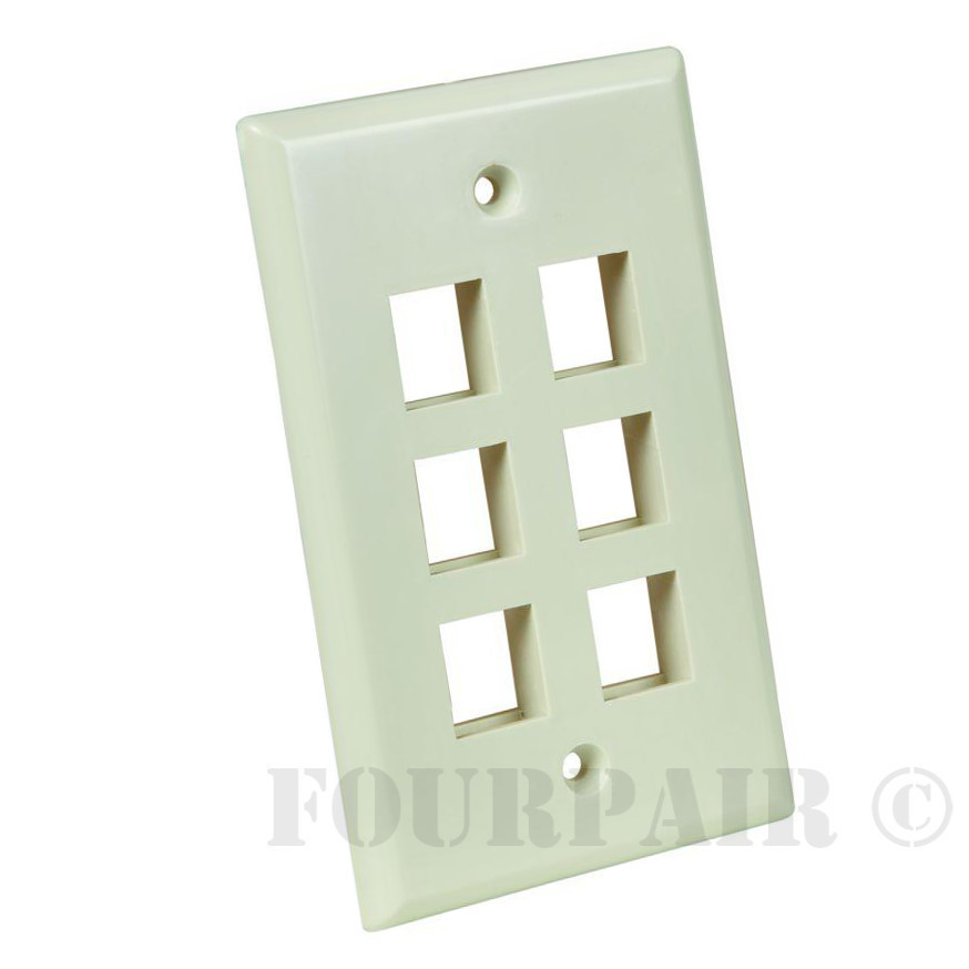 2 Pack Lot Keystone 6 Hole Port Jack Network Wall Face Plate CAT5e CAT6 Almond