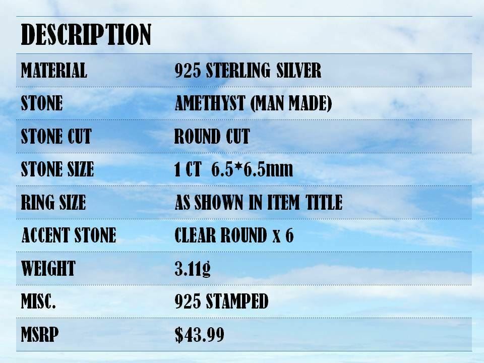 как выглядит CLASSY 1 CT AMETHYST 925 STERLING SILVER RING SIZE 5-10 фото