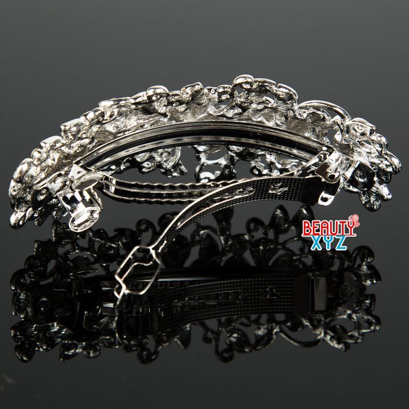New Woman's Flower silver plated metal rhinestone wedding hair clip Barrette
