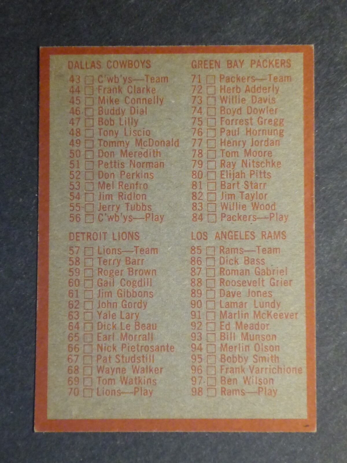 • 1965 Philadelphia Football Checklist No 1 197 EX/MT Inv 816cb