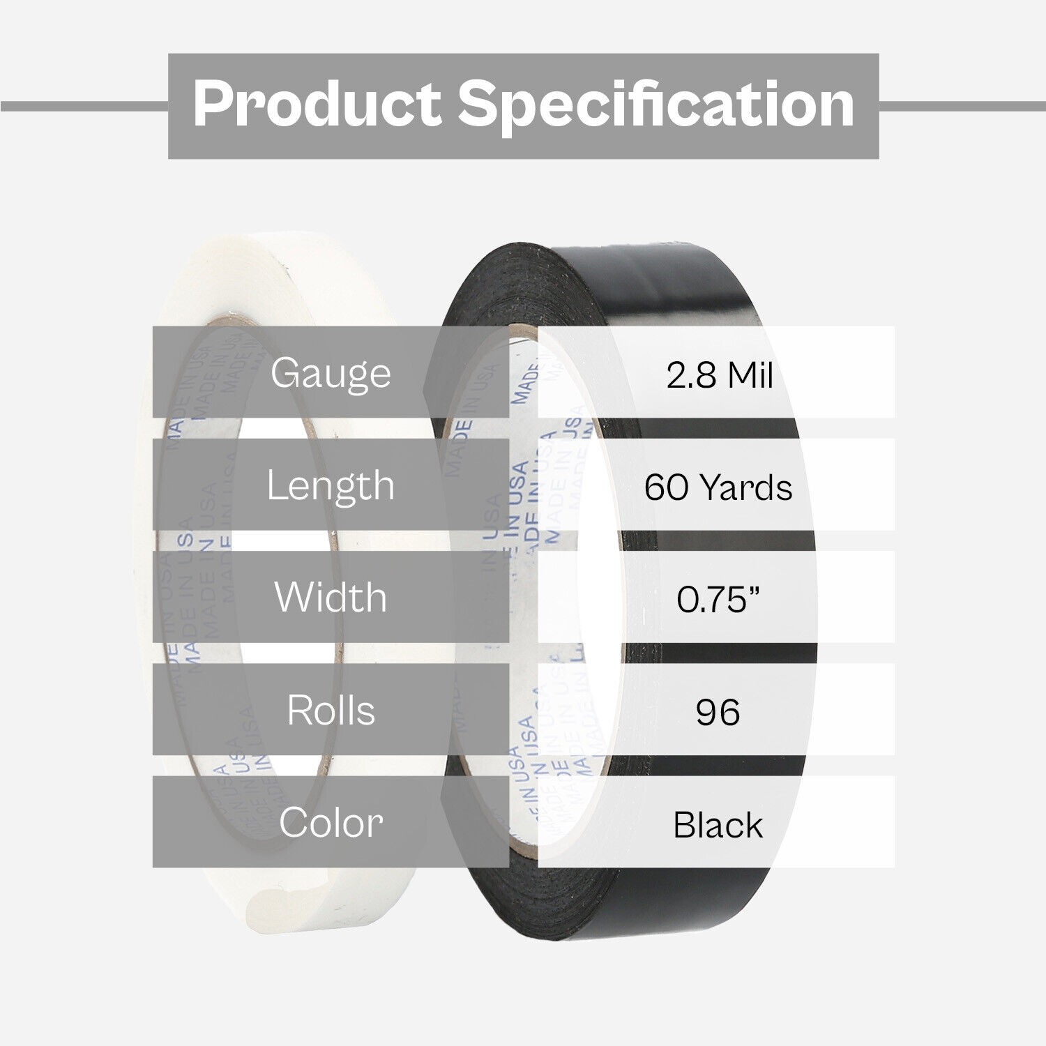 как выглядит Black Adhesive Packing Tapes Strapping Tape 2.8 Mil 3/4" x 60 Yards 96 Rolls фото