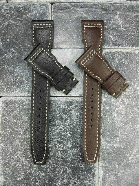 как выглядит New 22mm Black CALF Leather Strap Deployment Watch Band IWC BIG PILOT 22 White фото