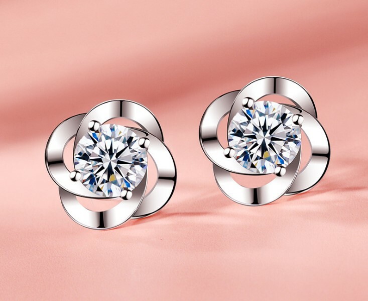 7mm Rose Flower 925 Sterling Silver Cubic Zirconia Stud Earrings Gift Box K31