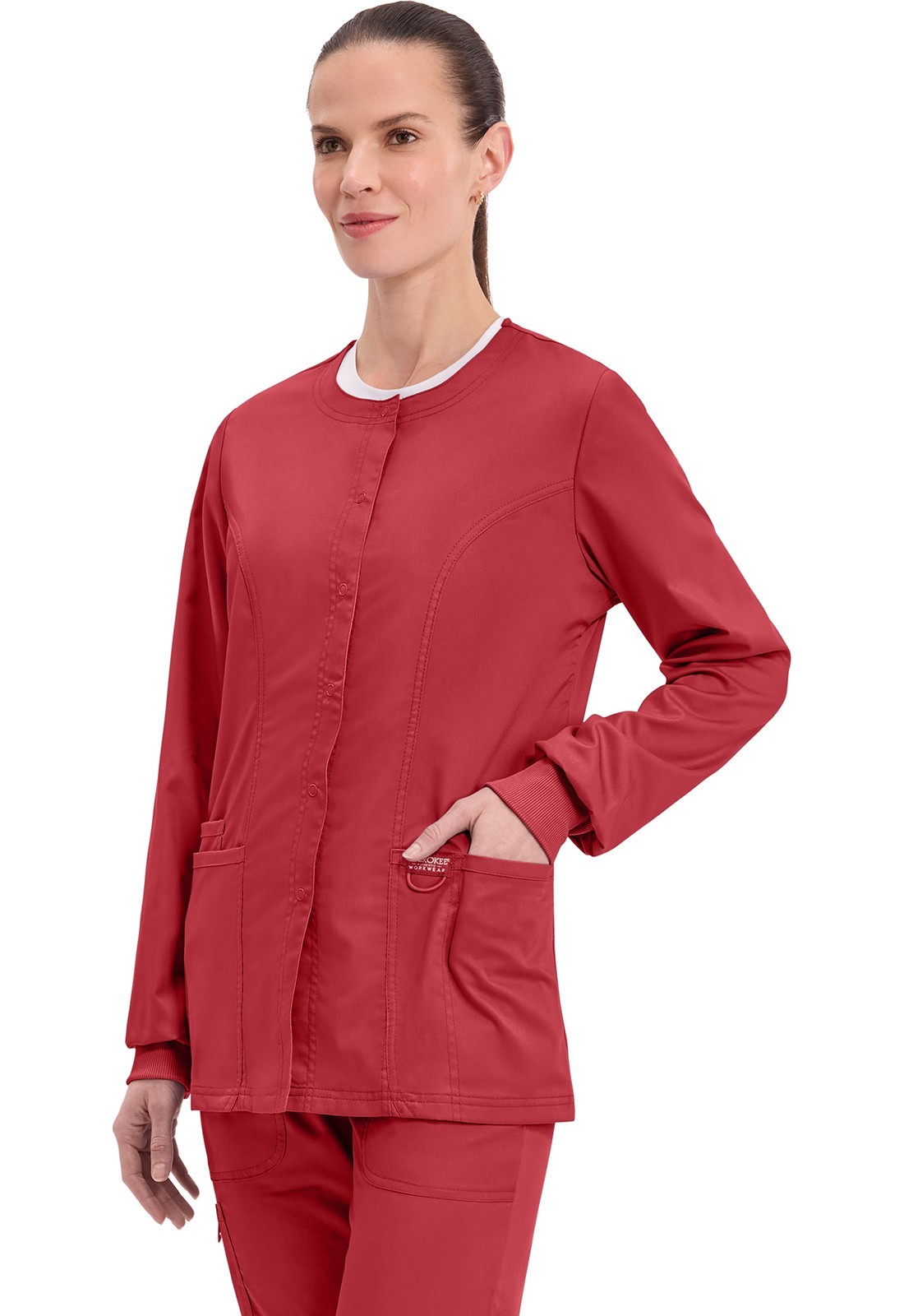 Cherokee Workwear Scrubs Snap Front Warm Up Jacket WW310 RED Red Free Shipping