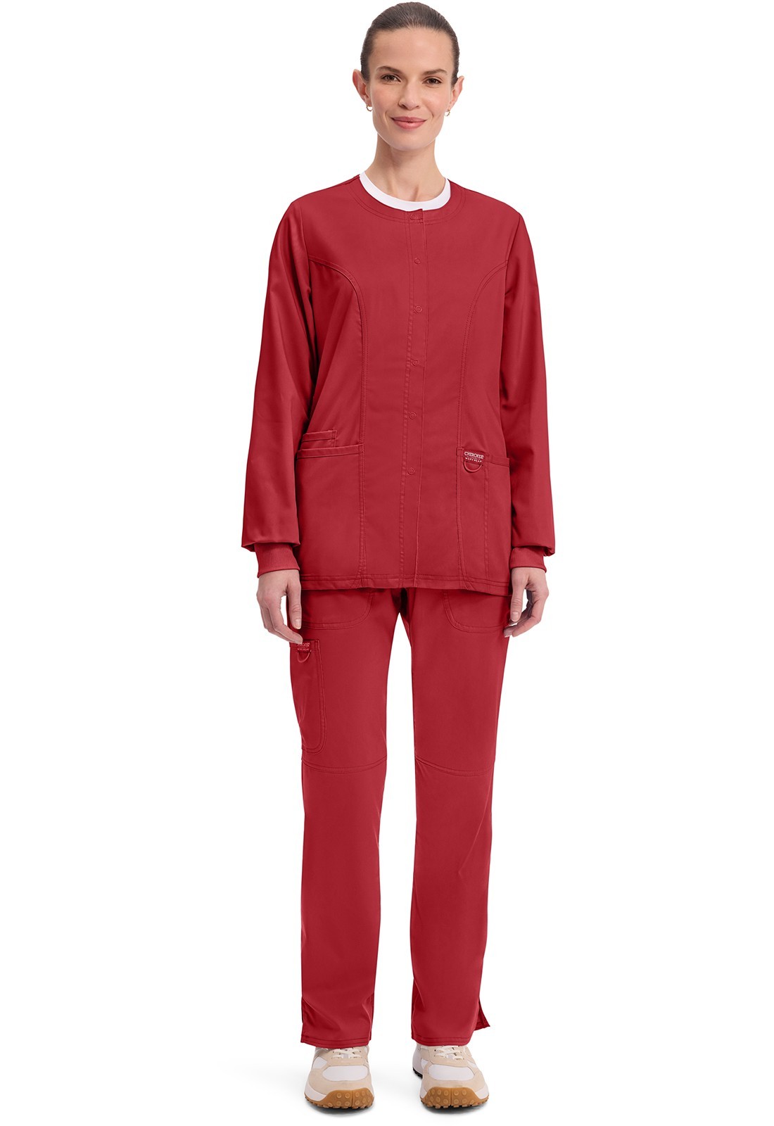 как выглядит Cherokee Workwear Scrubs Snap Front Warm Up Jacket WW310 RED Red Free Shipping фото