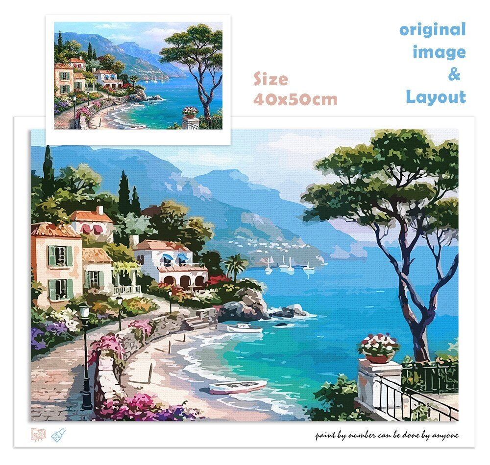 Paint By Numbers Adults The Mediterranean Sea DIY Painting Kit 40x50CM Canvas