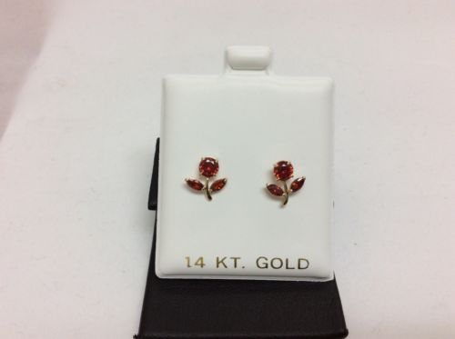 14K Yellow real Gold Birthstone Flower Stud Earrings for Baby Children Screw Bac