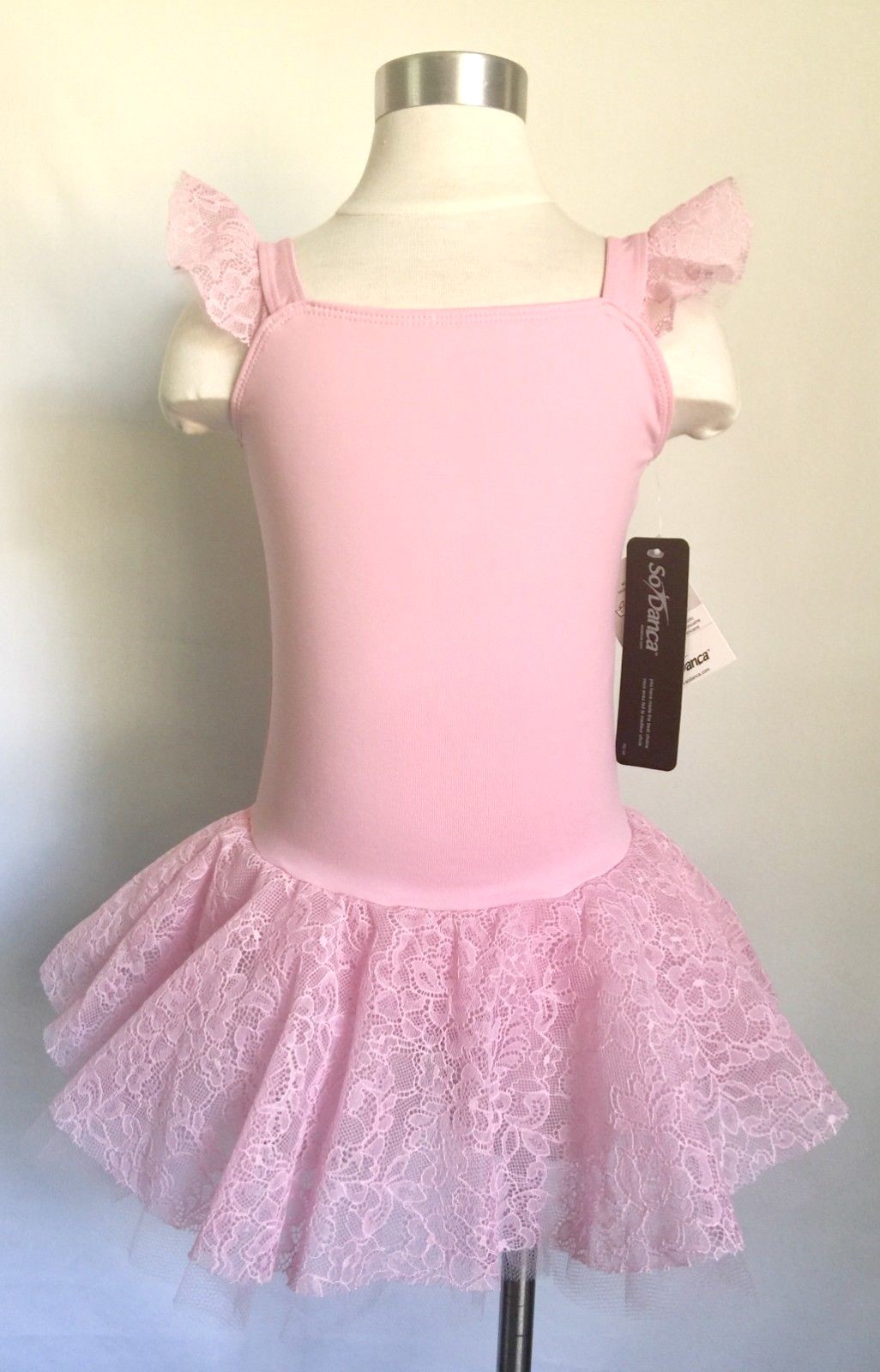 So Danca Girls Microfiber Lace Skirted Leotard Tutu Dress, Black or Pink, NWT