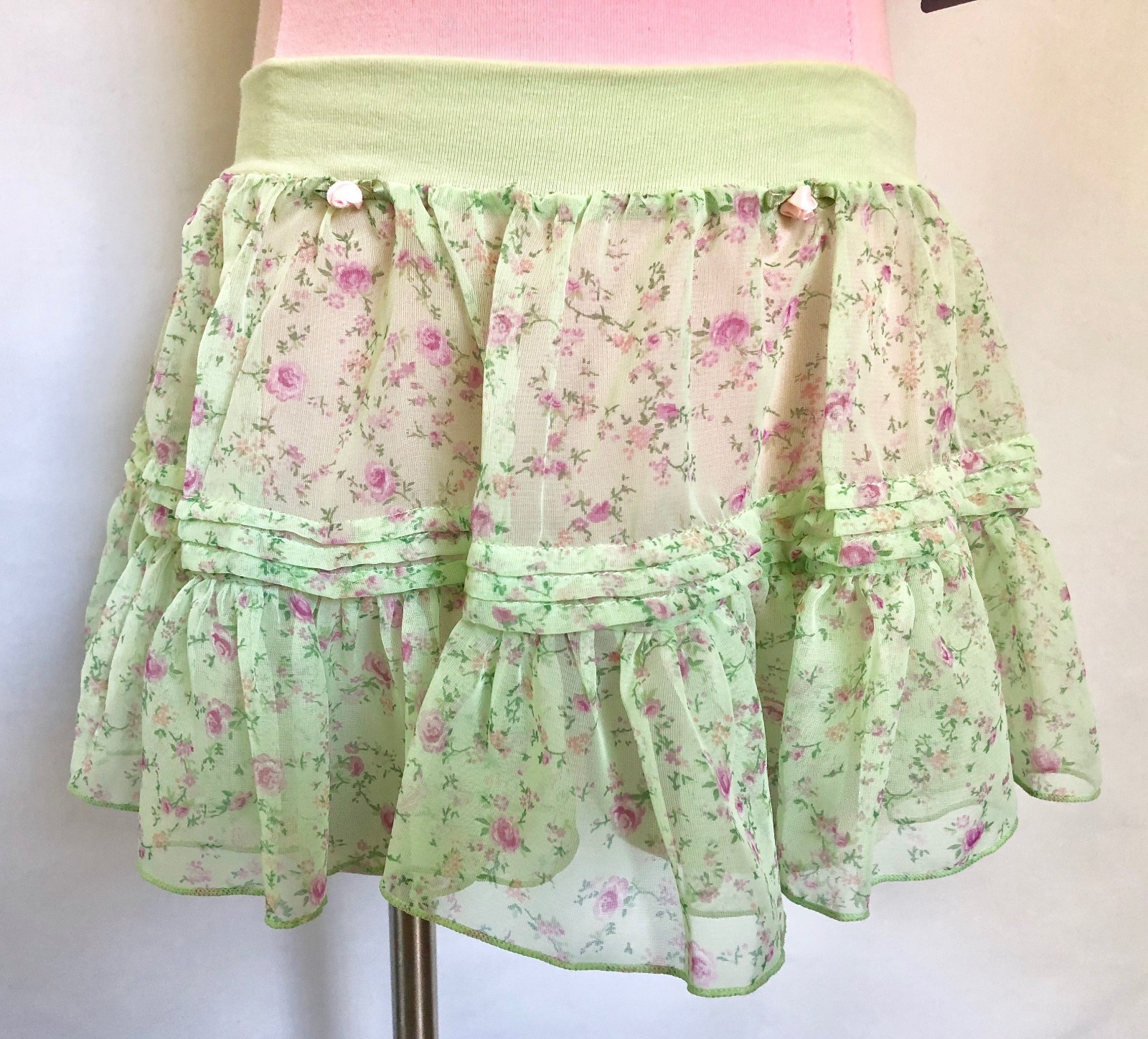 как выглядит BASIC MOVES Sheer Floral Pull-On Ballet SKIRT, GREEN or PINK, NWT фото