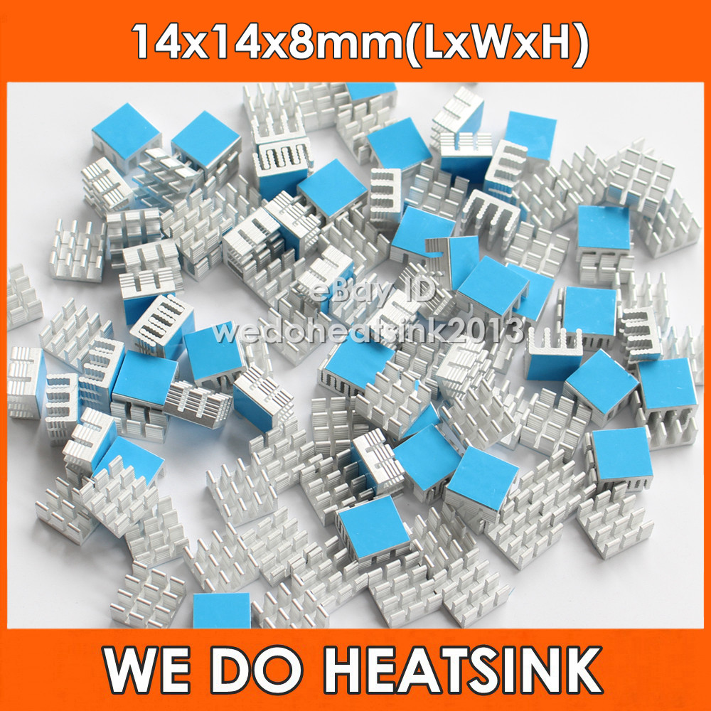 20pcs Silver Small Square 14x14x8mm Aluminum Heat Sinks Cooler With Thermal Tape
