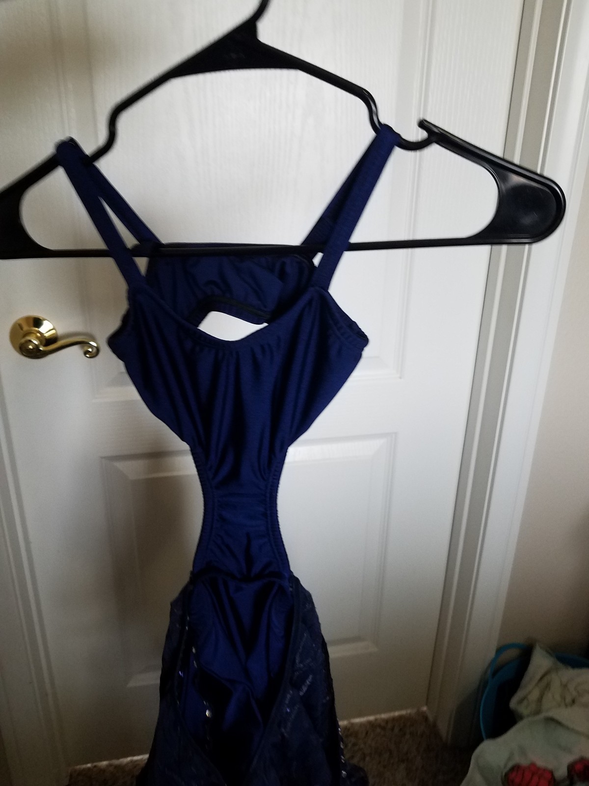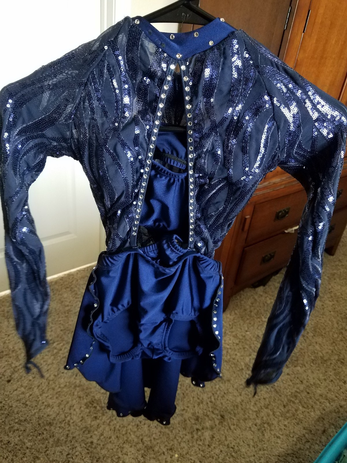 как выглядит Deep Dark Blue Long Sleeve Leotard Lyrical Solo Dance Costume Child Medium фото
