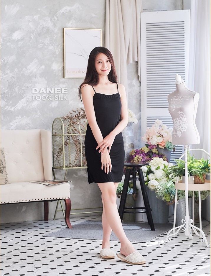 DANEE 100 Pure Natural Silk Satin Sheer Slip Dress Nightgown Knit Stretch