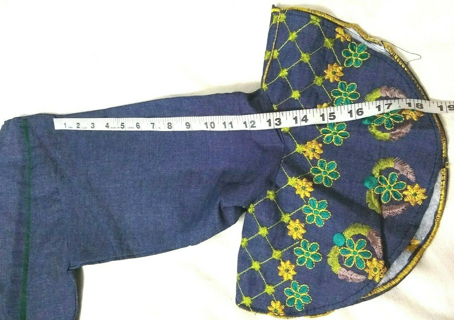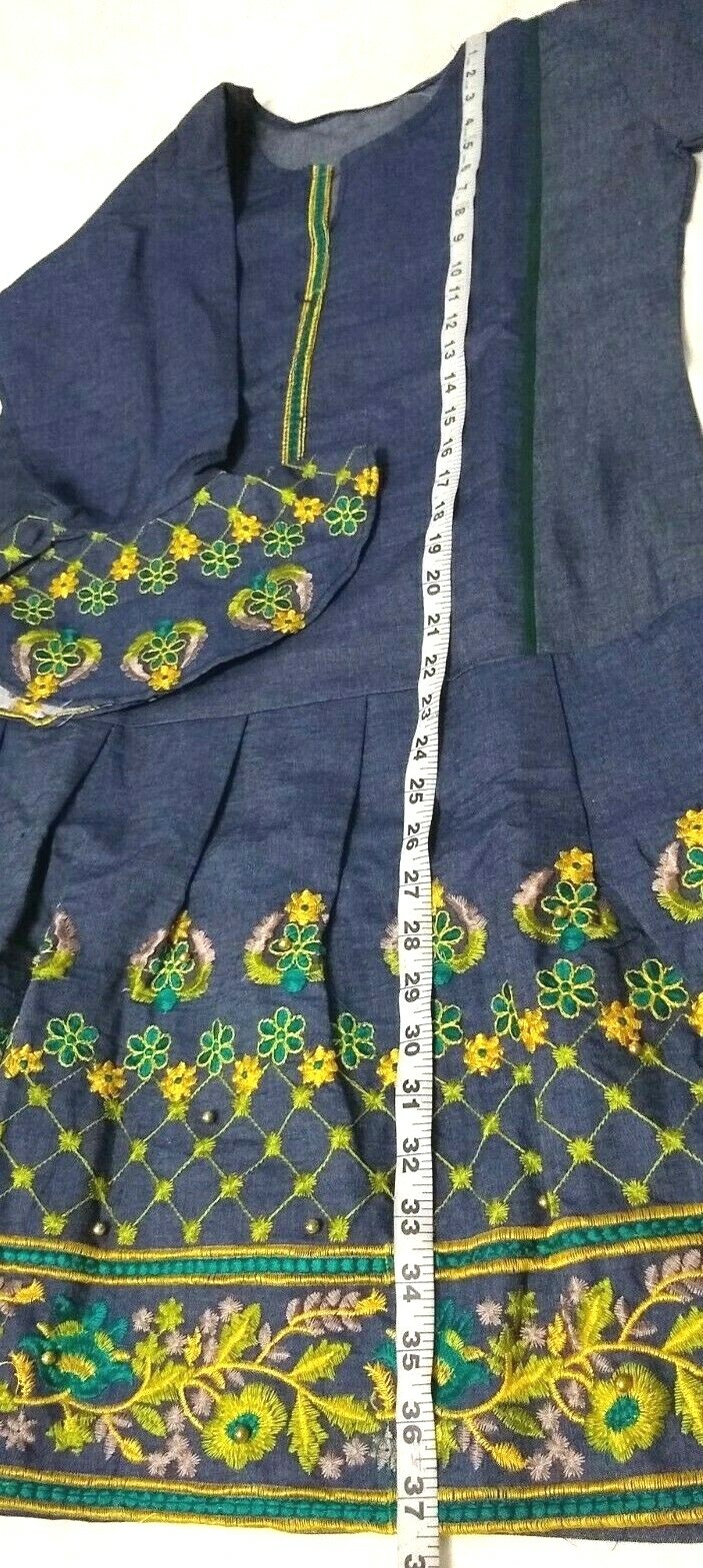 как выглядит Denim Embroidered Stitched Kurta For Girls Women - фото