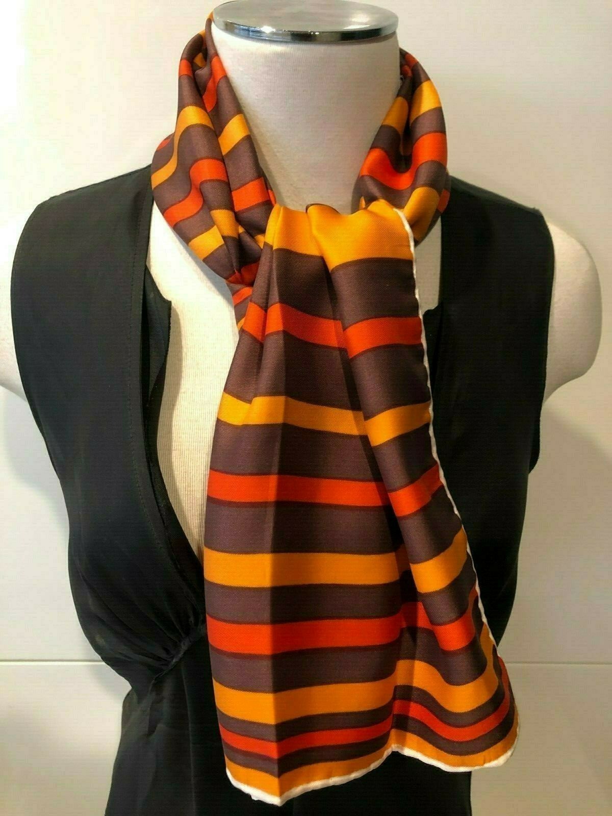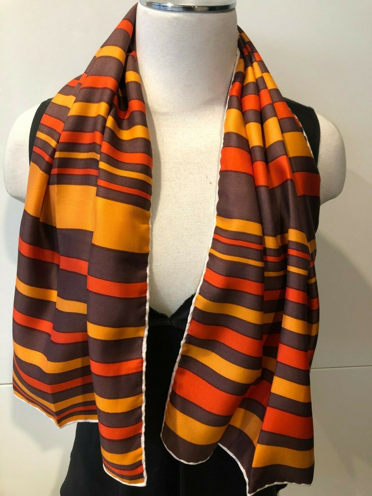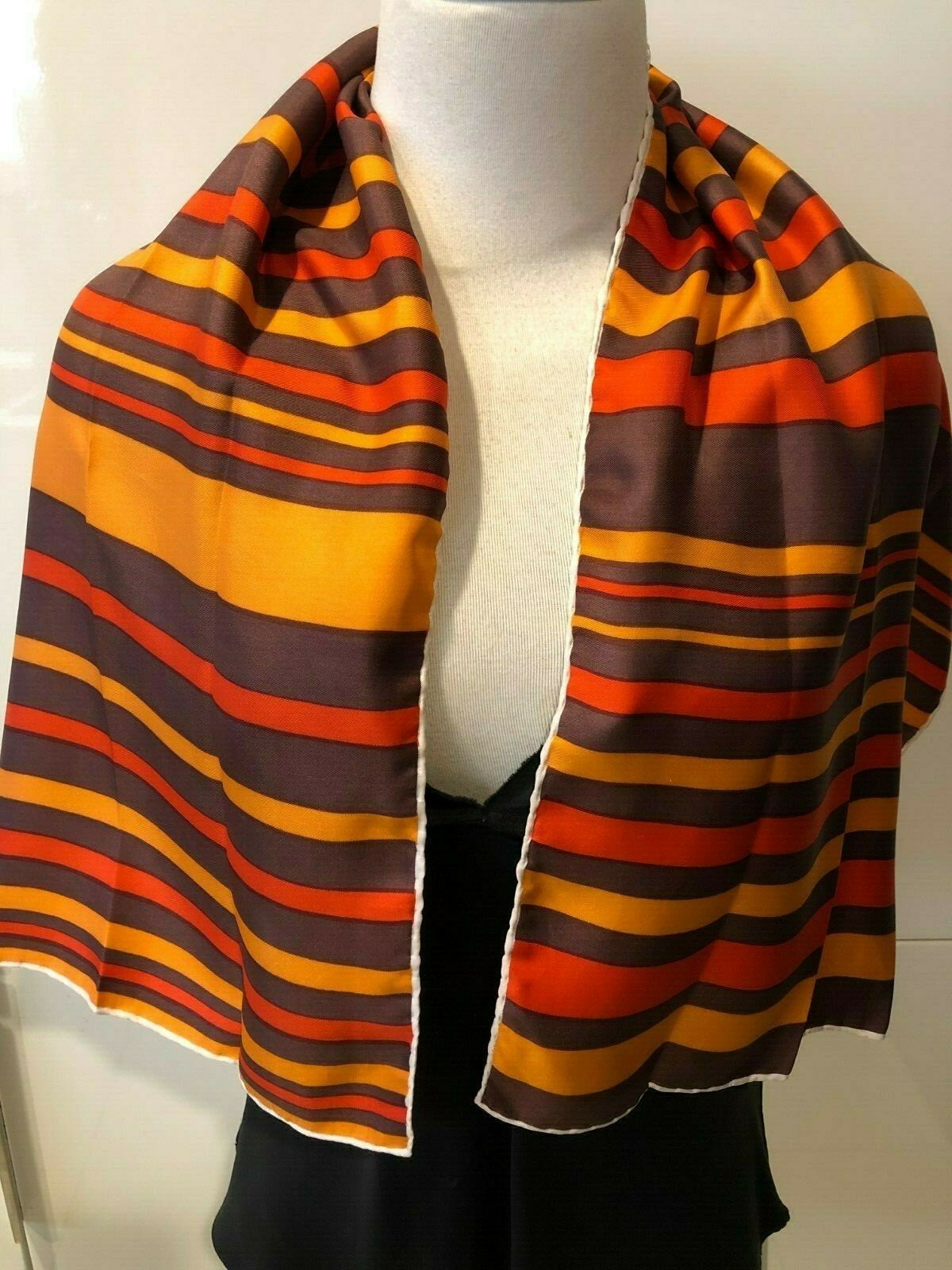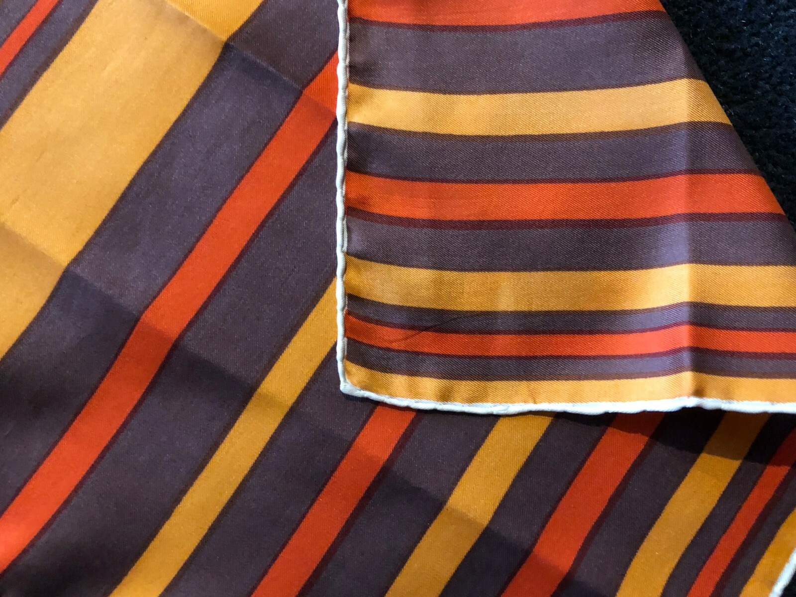как выглядит Vintage Jacqmar London Silk Twill Striped SCARF 33cm x 106cm Handroll Hems фото