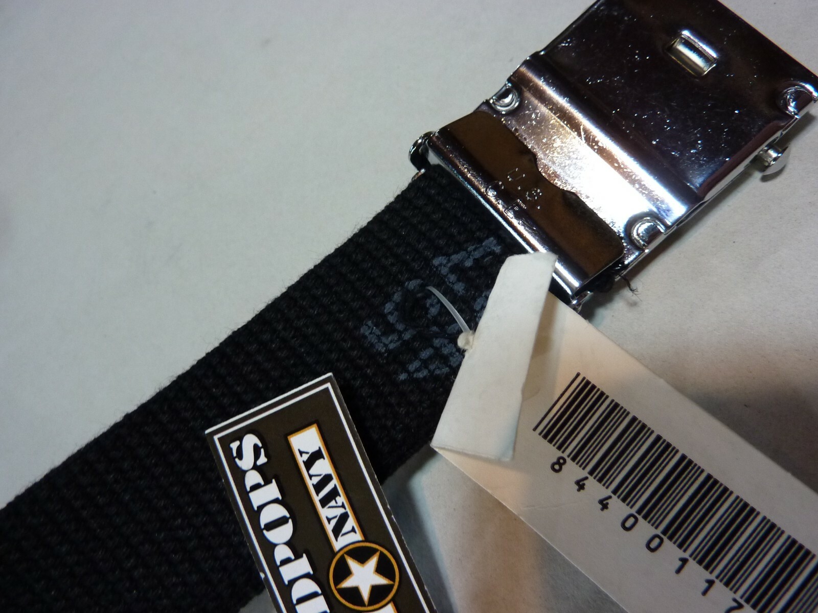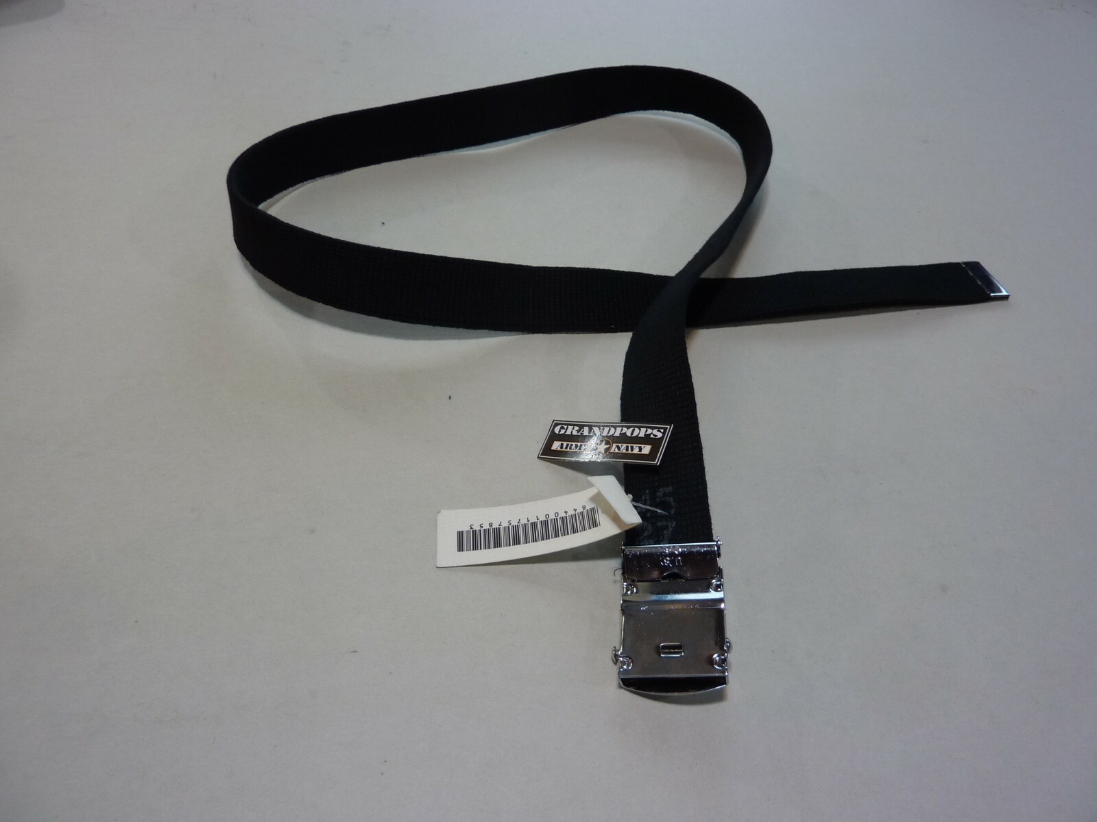 как выглядит U.S. ARMY WEB BELT BLACK CHROME BUCKLE AND TIP 45" FROM TIP TO TIP фото