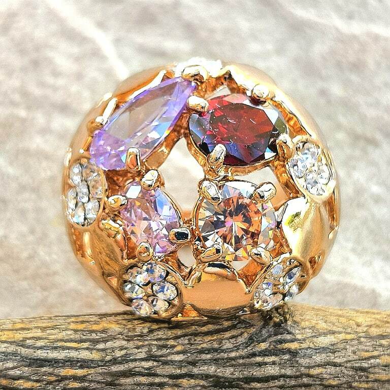 Amethyst Garnet Pink Rhinestone 18K Gold Plated Wedding Engagement Ring Size 8