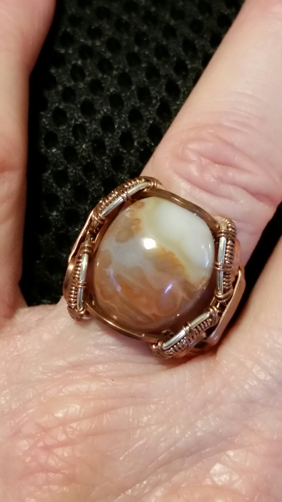 HANDCRAFTED COPPER WIRE RING WITH LARGE AGATE GEMSTONE