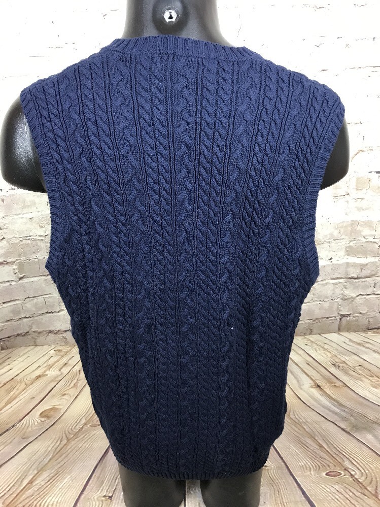 как выглядит VINTAGE IZOD CLUB SWEATER VEST Cable VNeck Golf Blue Size Large фото