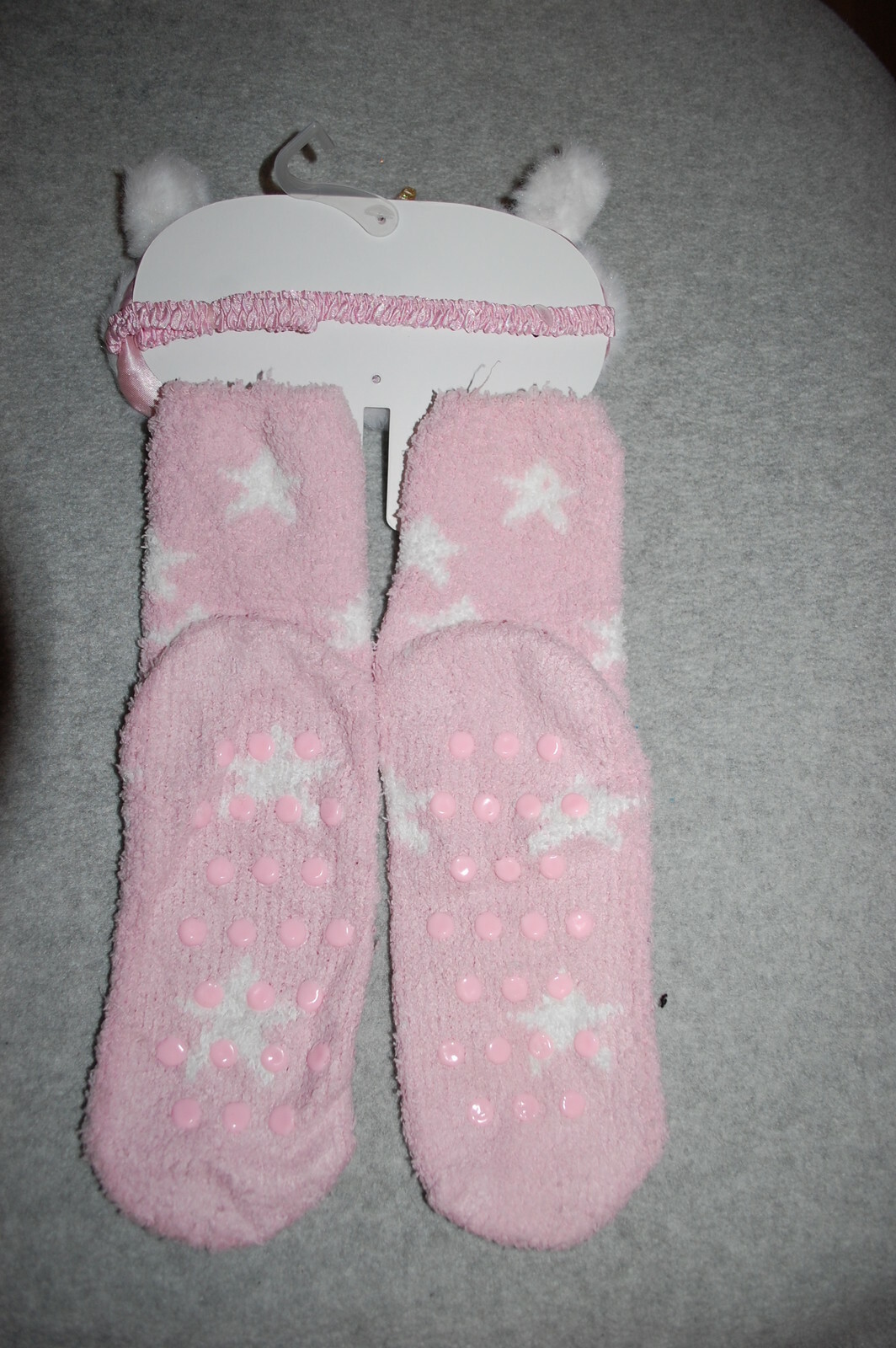Sleep Eye Mask Fuzzy Cozy House Socks UNICORN Gold Glitter Horn PINK WHITE