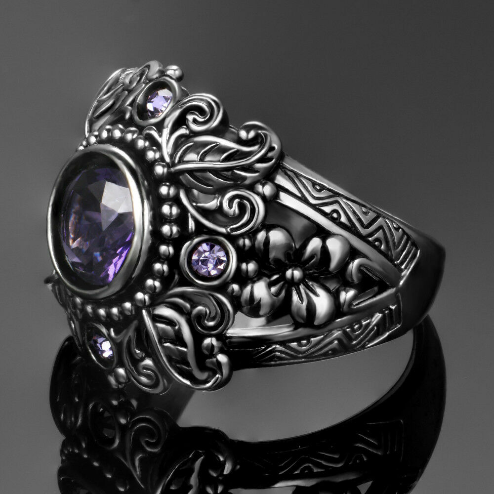 Elegant 925 Sterling Silver Purple Amethyst Charm Wedding Engagement Ring Size 8