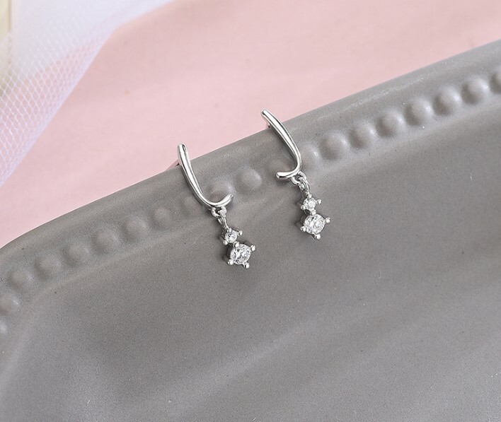 S925 Sterling Silver Drop Dangle Solitaire Stud CZ Earrings Cubic Zirconia F33