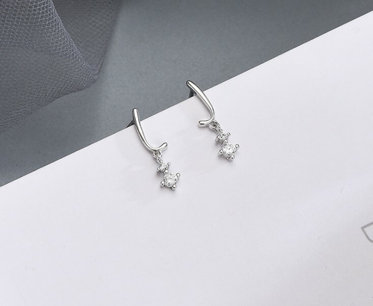 как выглядит S925 Sterling Silver Drop Dangle Solitaire Stud CZ Earrings Cubic Zirconia F33 фото