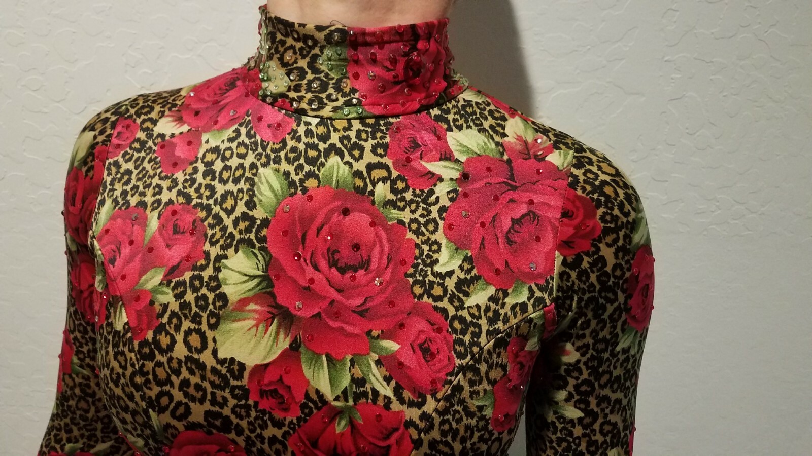 Leopard/Rose Latin/Rhythm Ballroom Dress Costume Feathers Size S Good Condition