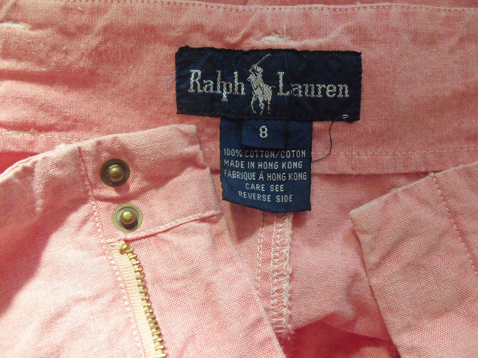 как выглядит Vintage Ralph Lauren Pink 100 Cotton Chambray Hollywood Waist Pleated Short - 8 фото