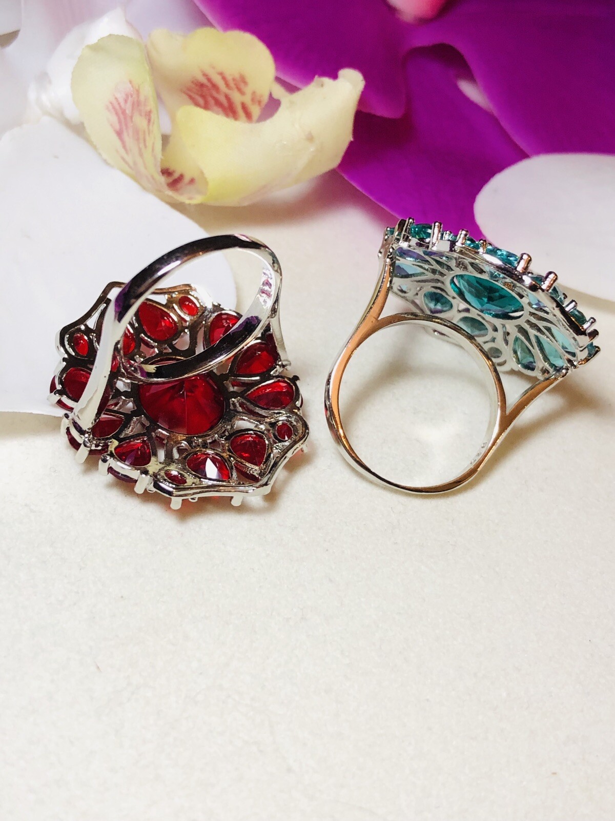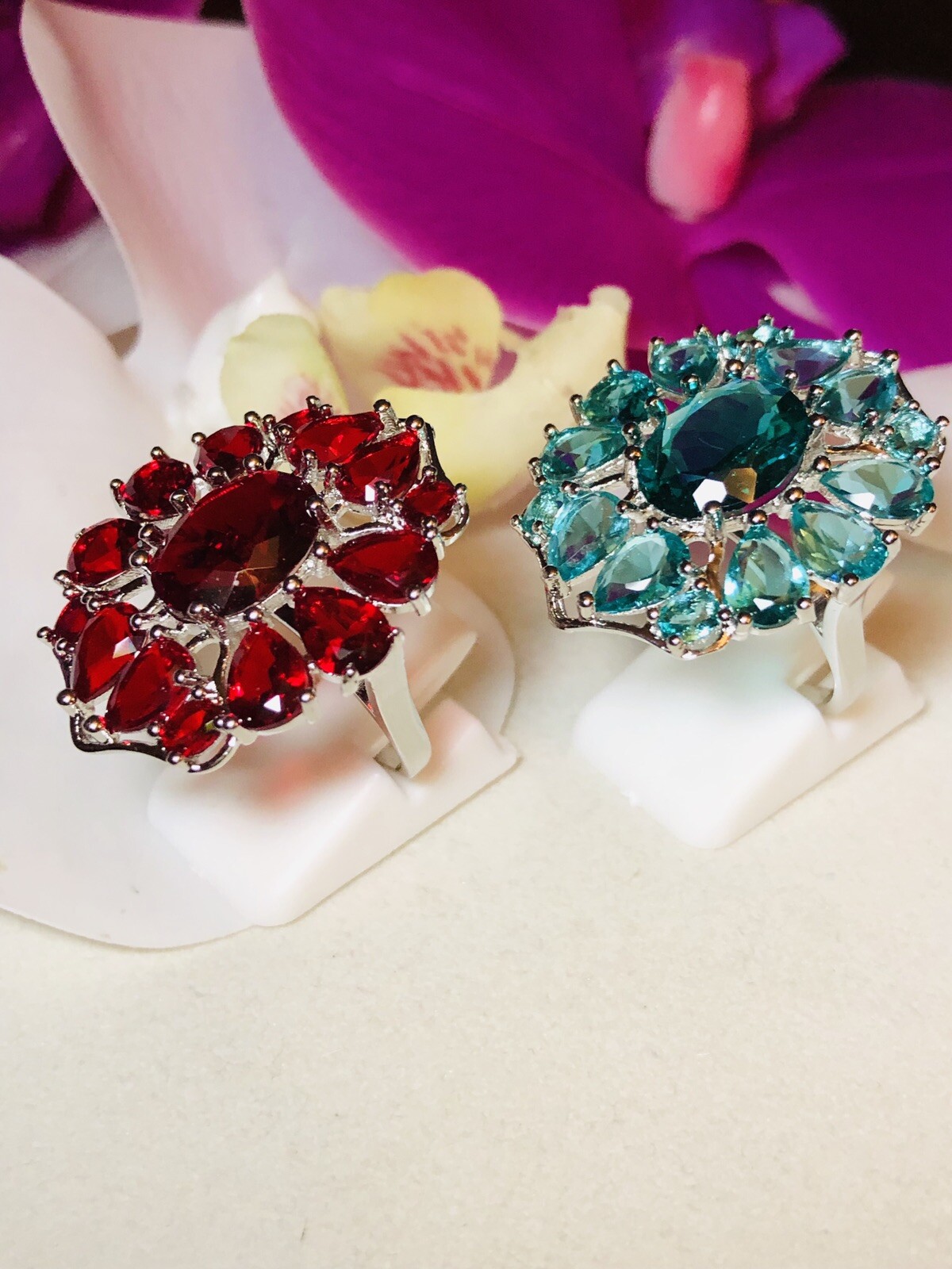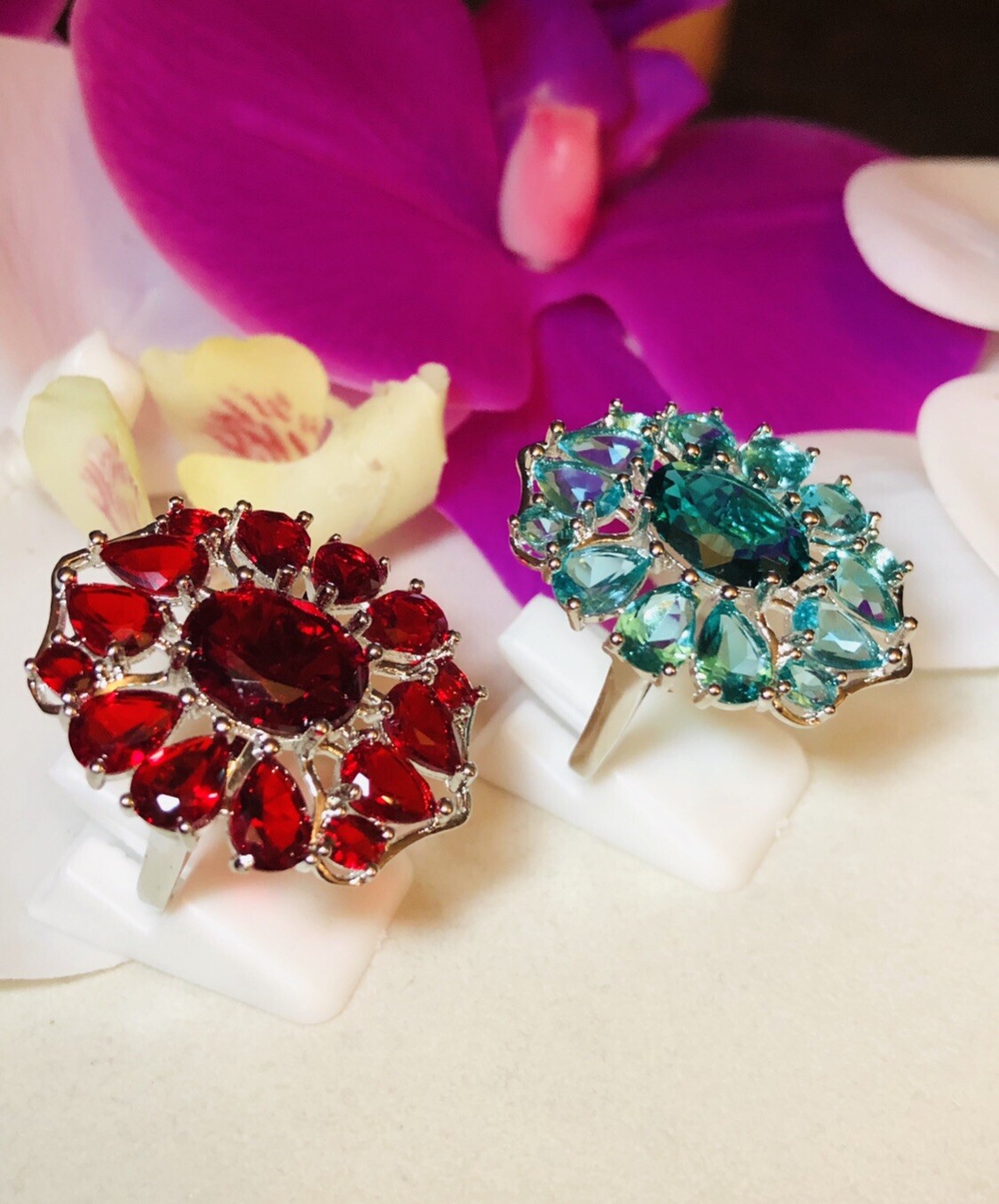 Sterling Silver.925 Red Ruby And Aquamarine Rings