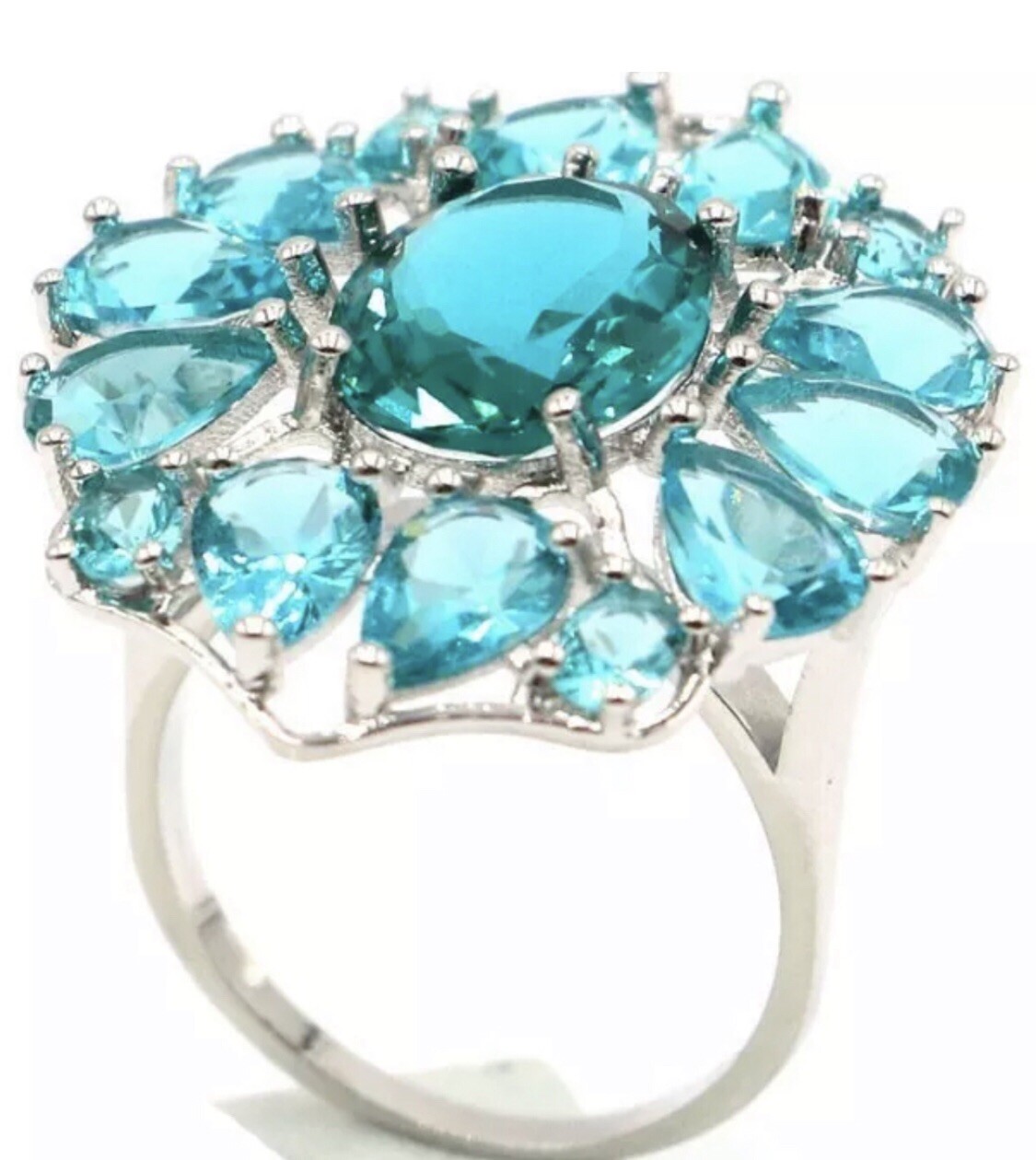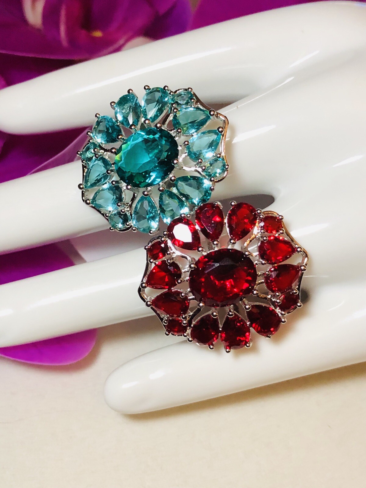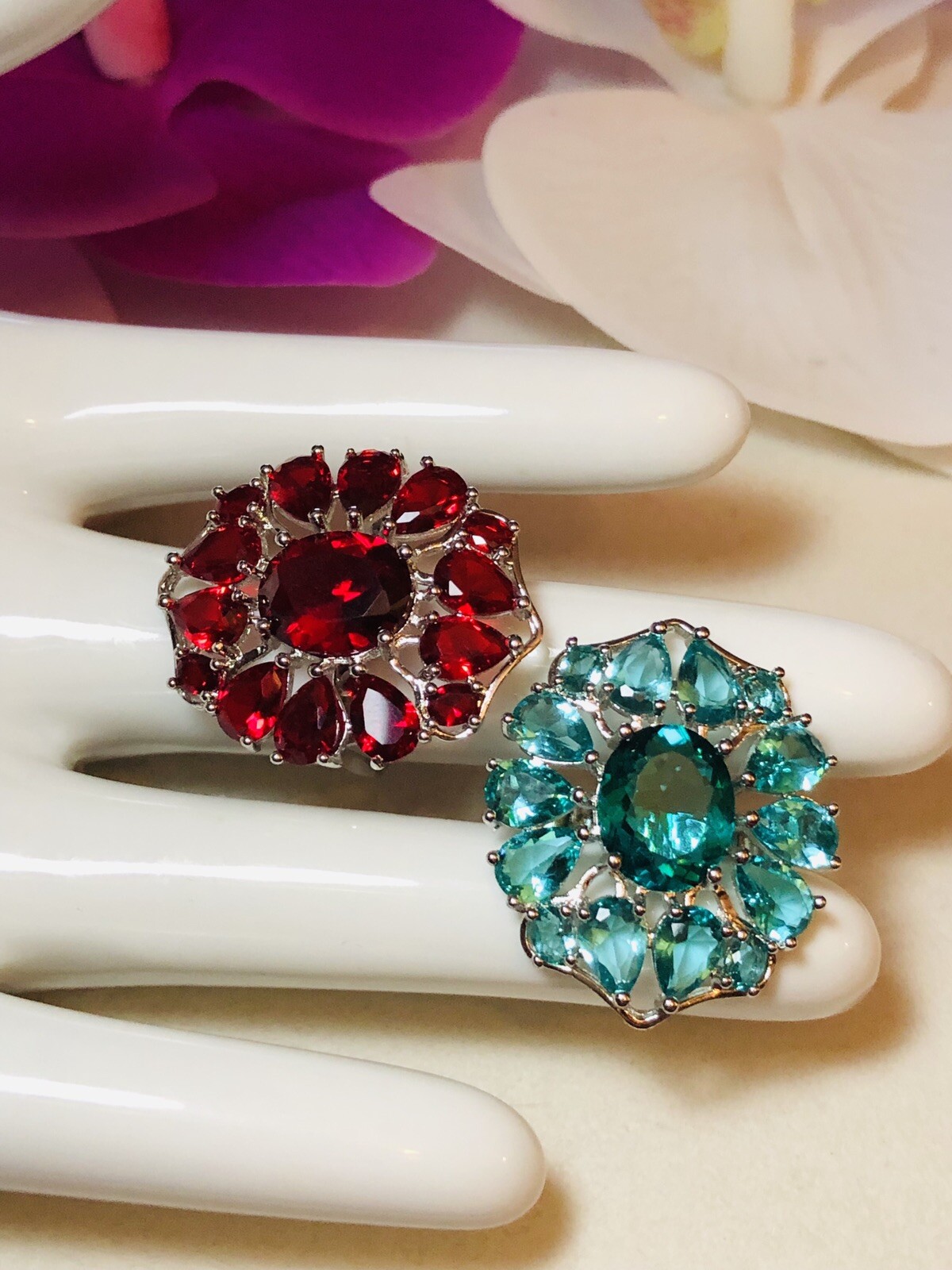 Sterling Silver.925 Red Ruby And Aquamarine Rings