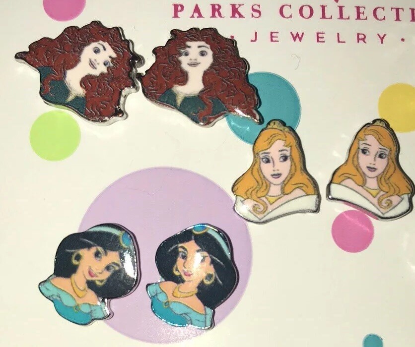 • Disney Parks Princess Merida Belle Aurora Jasmine Rapunzel Earrings Set of 5 NEW