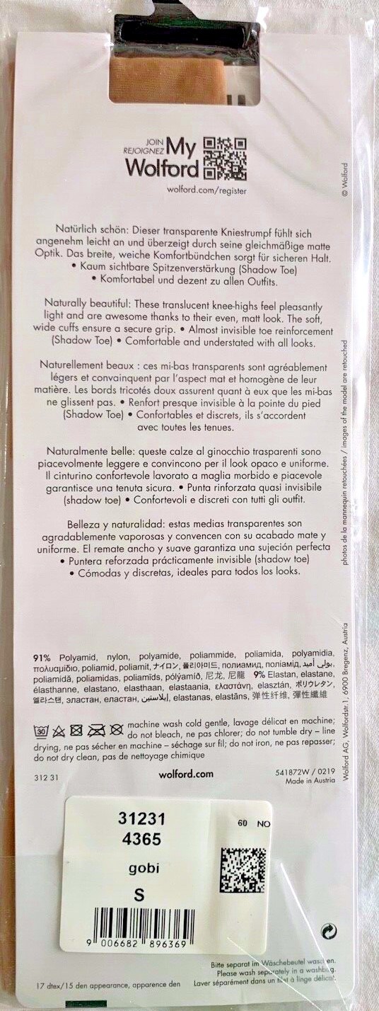 Wolford Women's Gobi Beige 15 Knee Highs Size Small