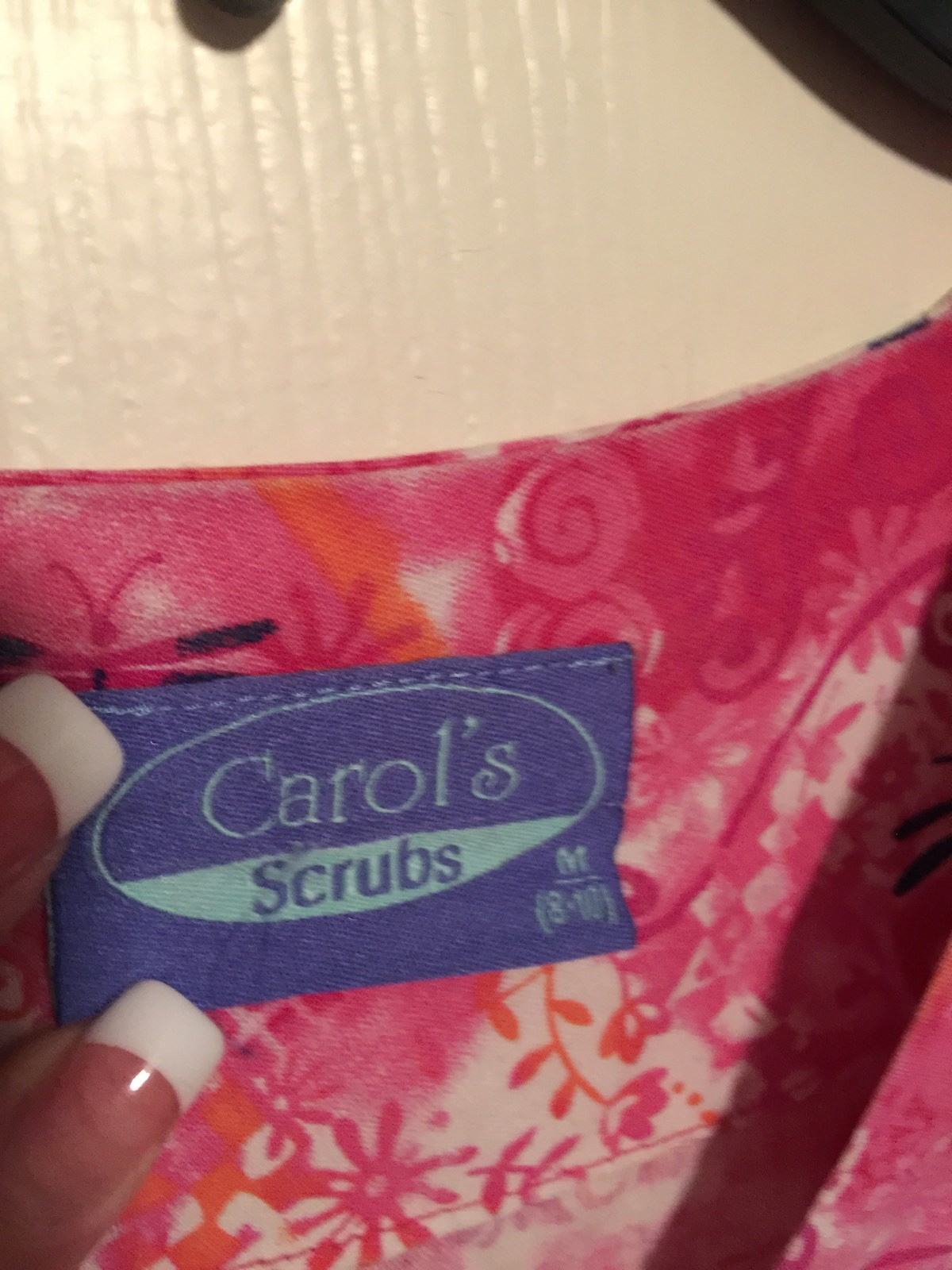как выглядит LADIES CAROLS SCRUBS SCRUB TOP SHIRT SIZE MEDIUM DRAGONFLIES PINK ROSE фото