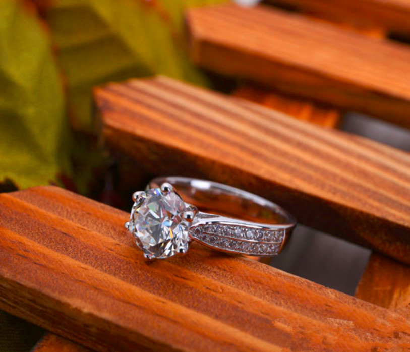 как выглядит Sterling Silver Plated 6 Prong Solitaire Round Cut CZ Engagement Wedding Ring фото