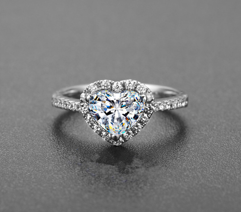 Sterling Silver Plated Heart Cut Cubic Zirconia Engagement Promise Rings
