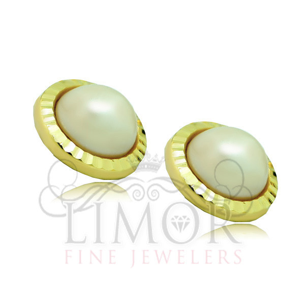 Children's Unique 14K Yellow Gold Stud Round Screw Back Freshwater Pearl Earring
