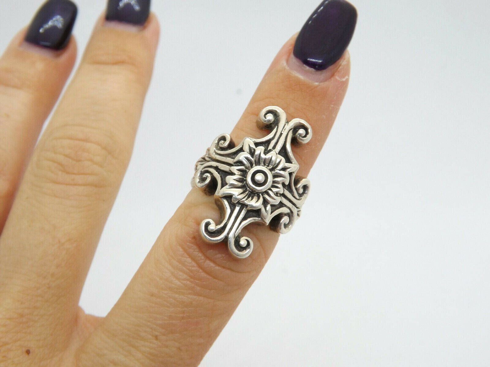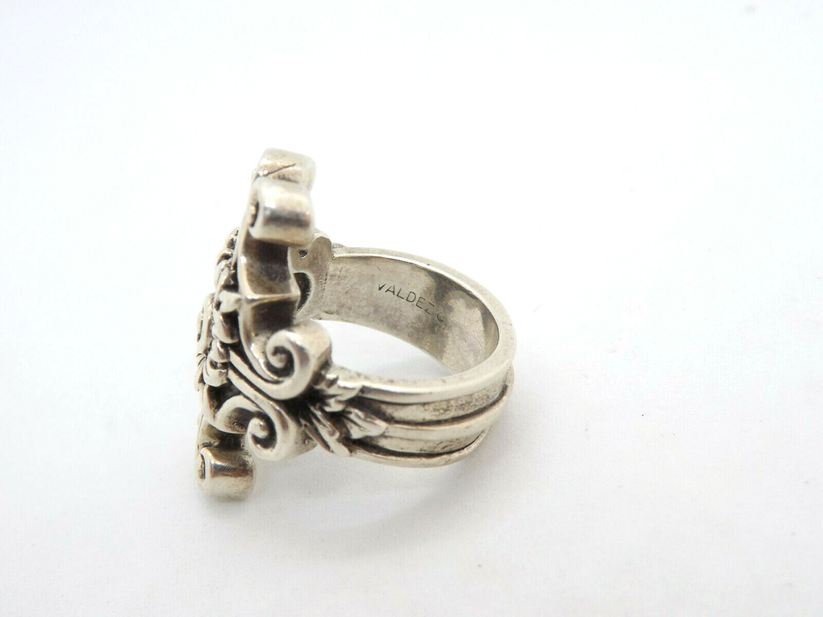 Andrew Valdez Artisan Silver Ornate Flower Scroll Ring, size 6