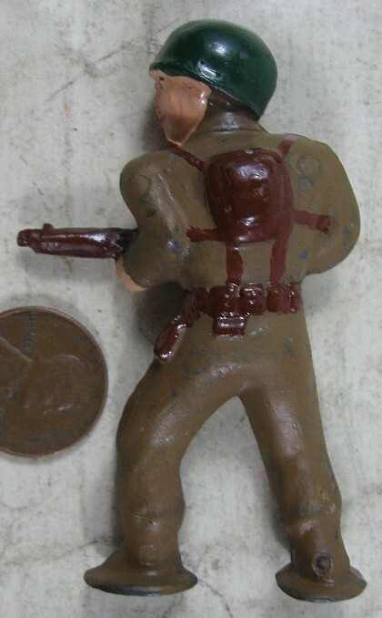 как выглядит Vintage Barclay Pod Foot Soldier With Tommy Machine Gun Green Helmet 3 фото