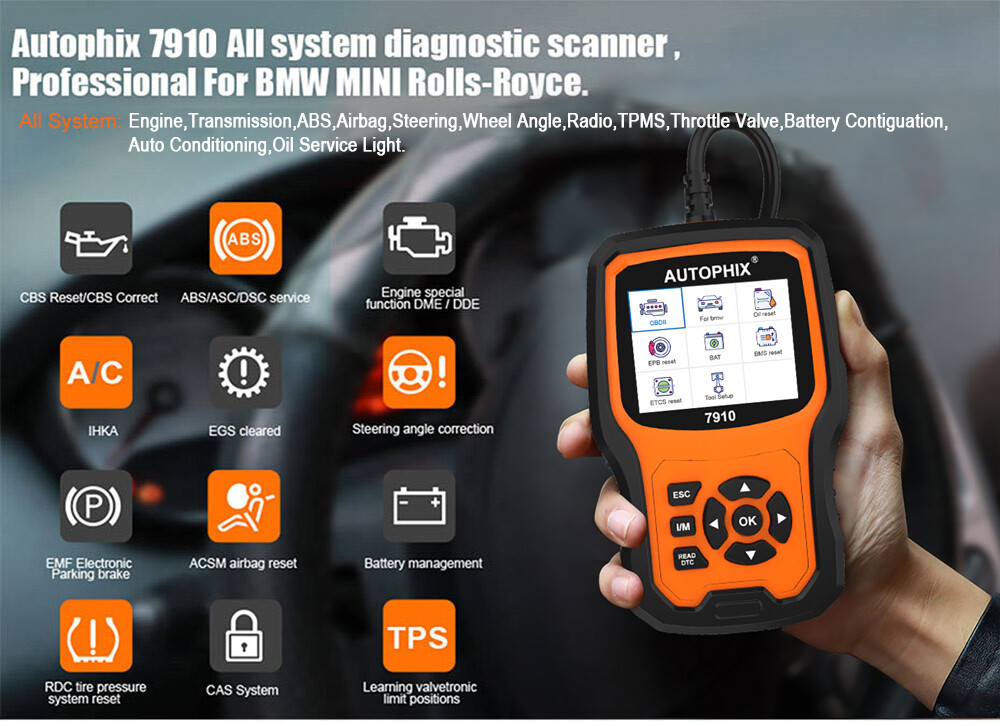 Autophix 7910 For BMW OBD2 Scanner Oil SAS SRS TPMS Battery Car Diagnostic Tool
