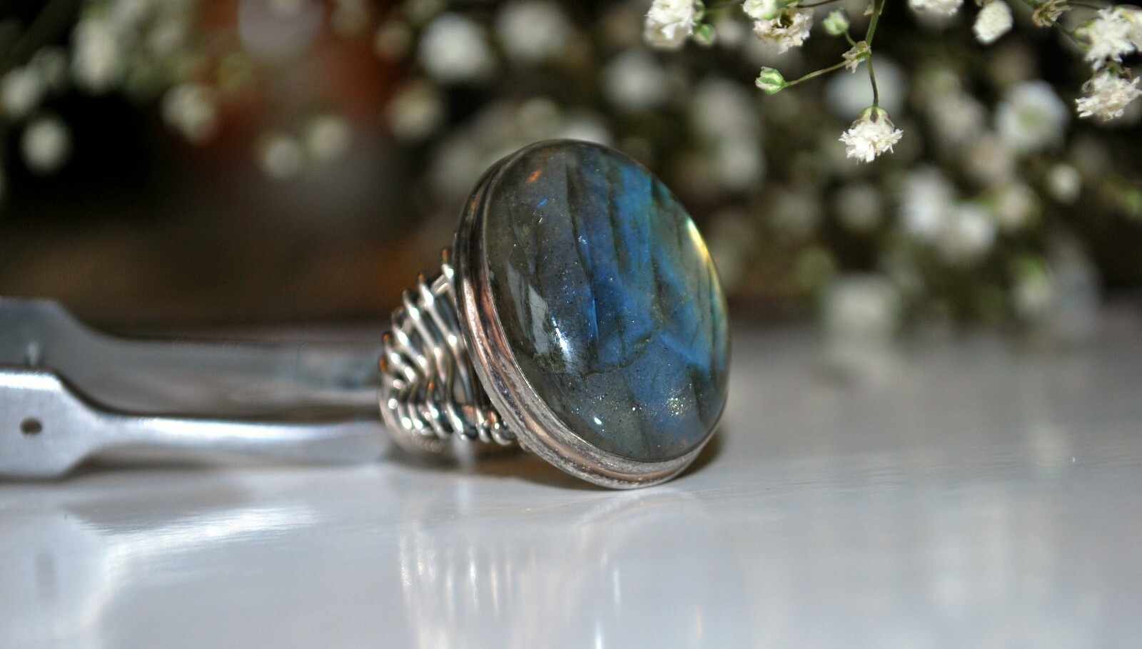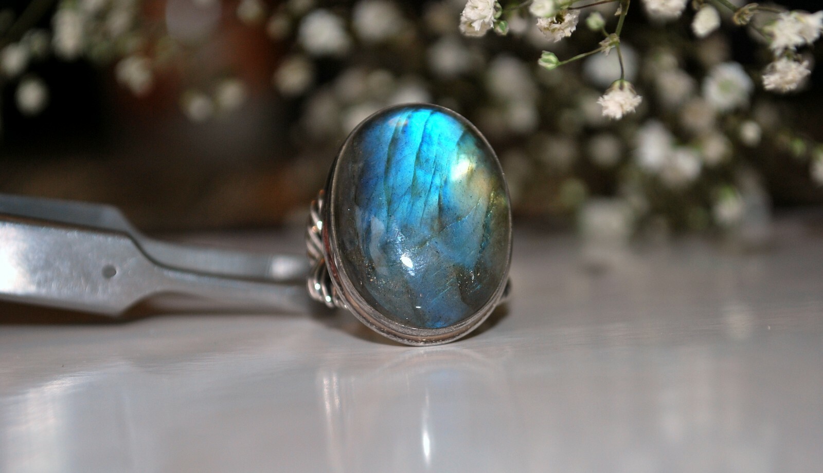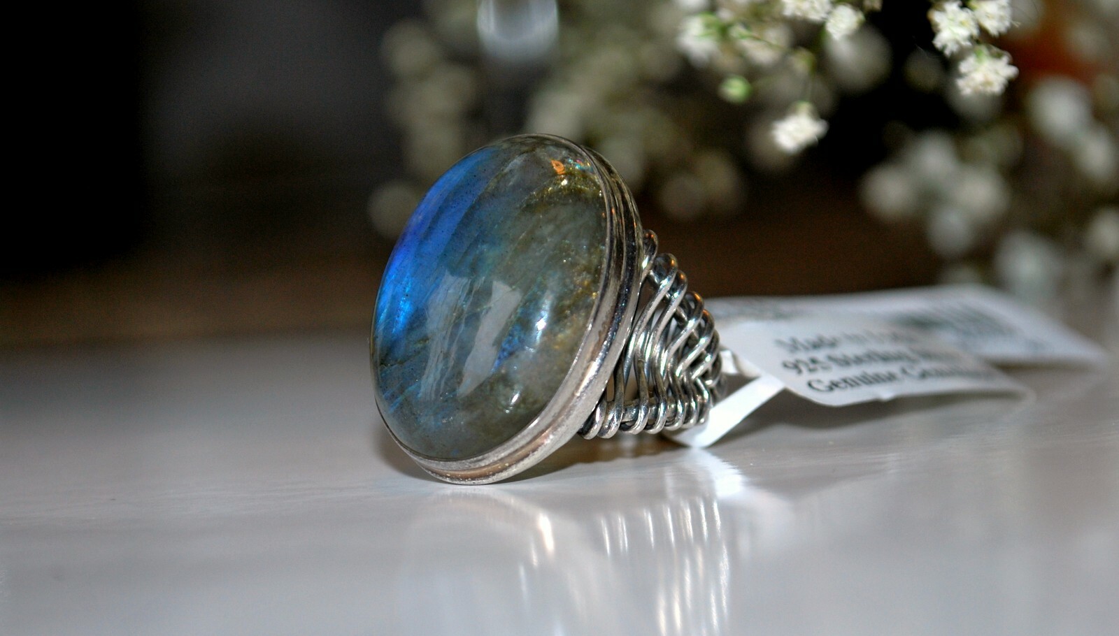 как выглядит Sterling Silver 925 Natural Labradorite Gemstone Ring Sz 7 NWT фото