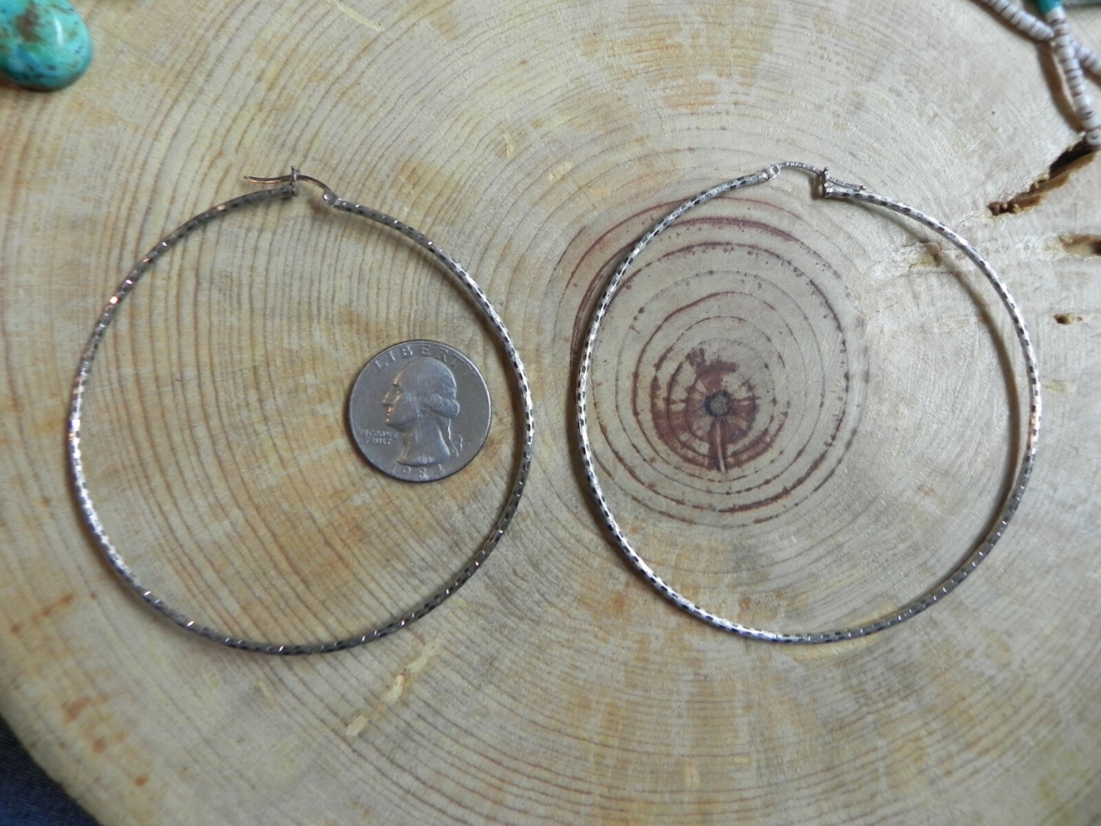LARGE Sterling Silver .925 HOOP Earrings 3 1/8 signed Mexico