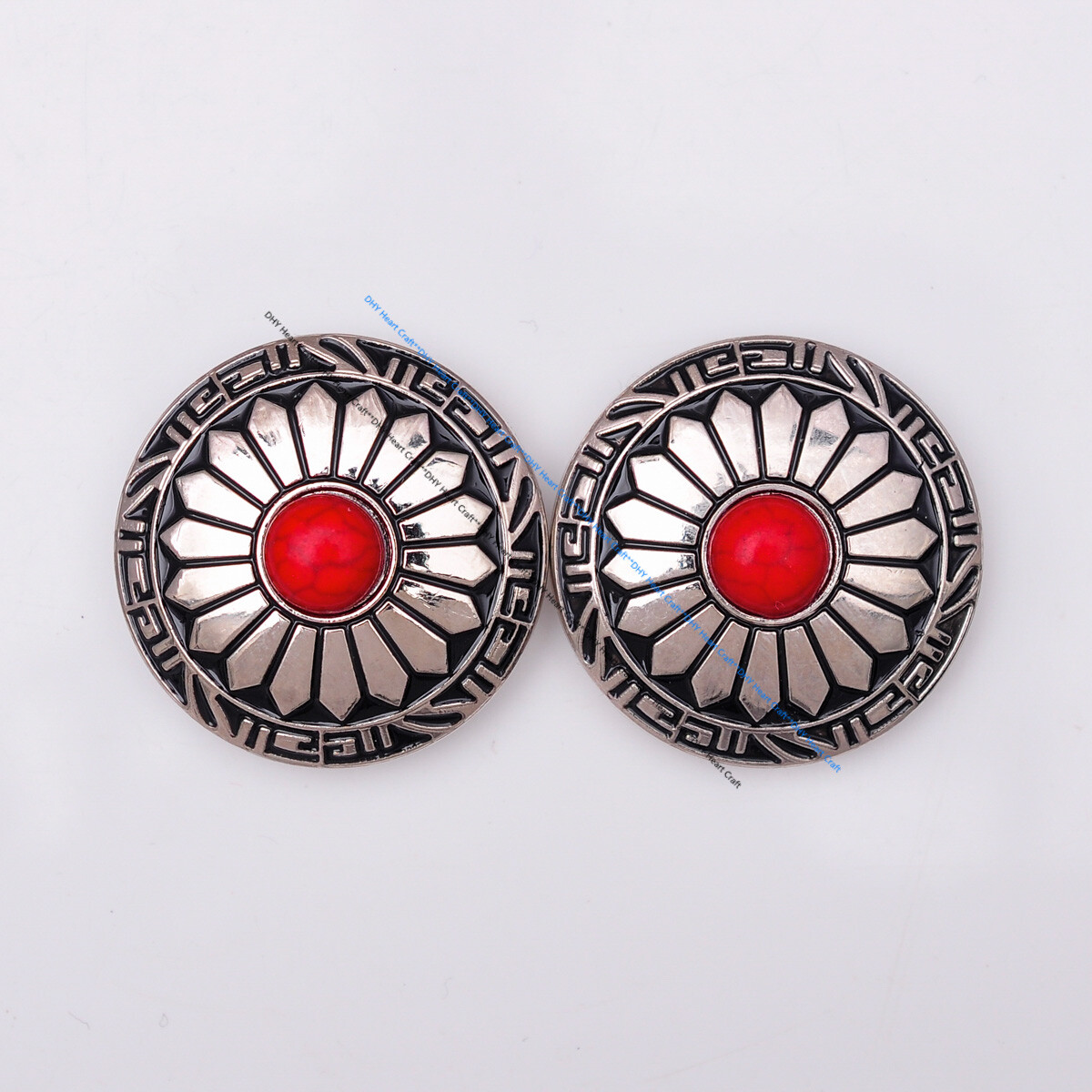 10X 30MM SILVER REAL STONE RED SUN FLOWER LEATHERCRAFT BELT SADDLE CONCHO