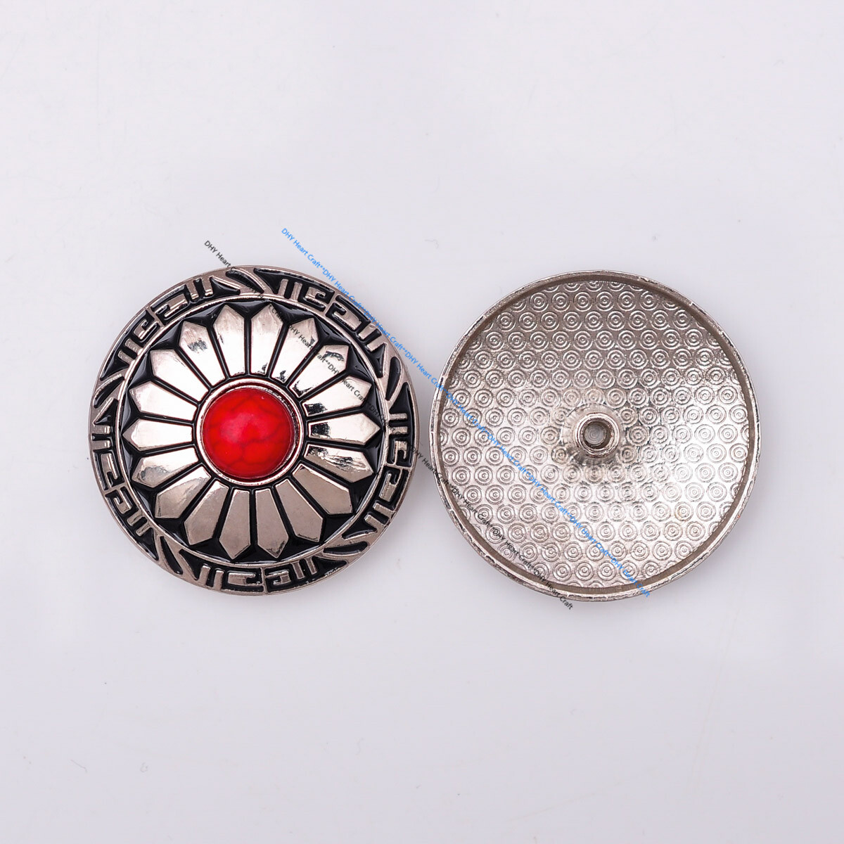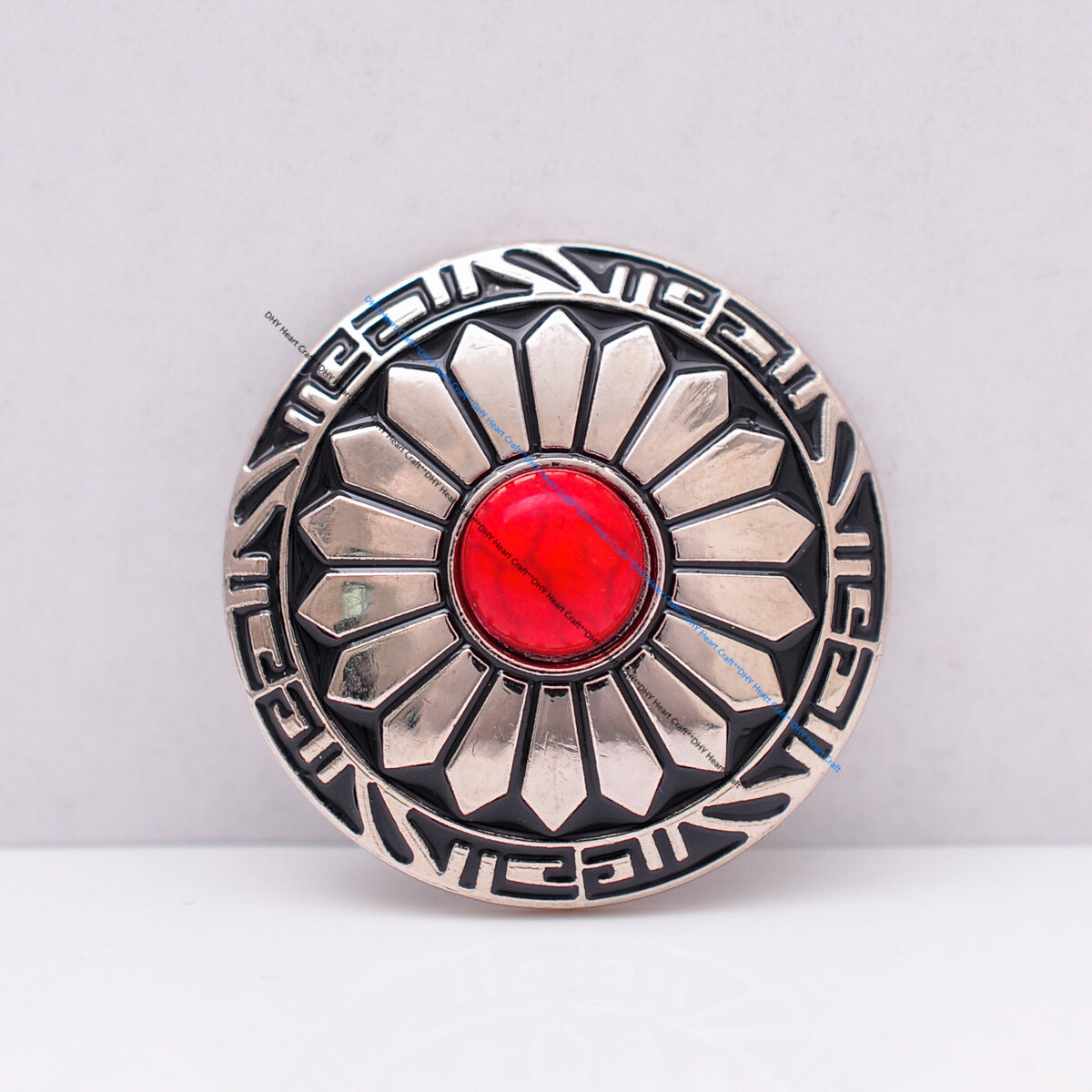 как выглядит 10X 30MM SILVER REAL STONE RED SUN FLOWER LEATHERCRAFT BELT SADDLE CONCHO фото