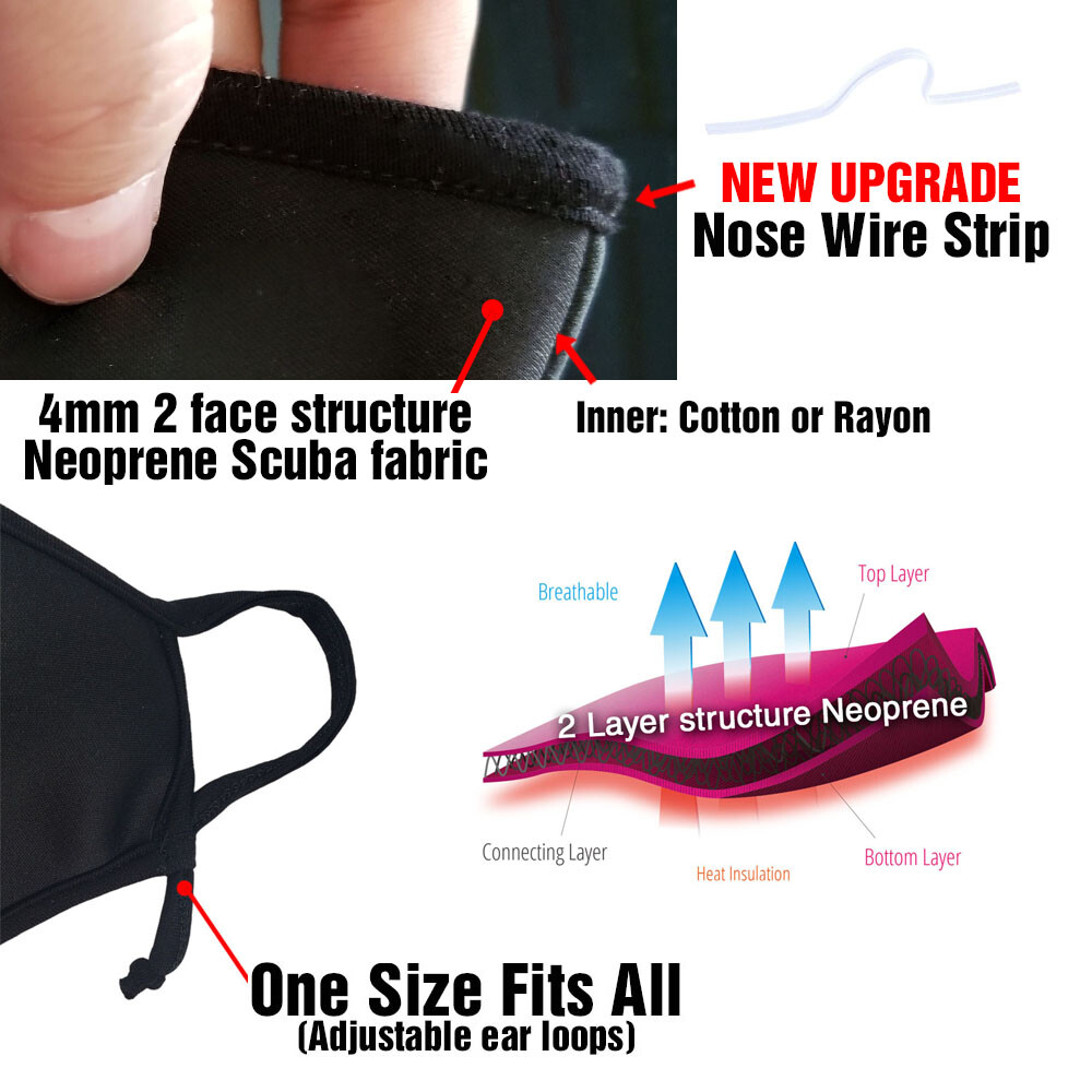 3 Pcs MADE IN USA Adjustable Size, NOSE WIRE Face Mask - Neoprene High quality