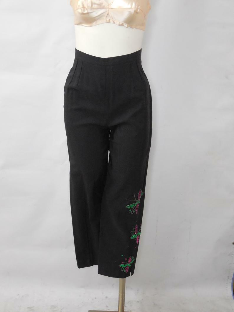 как выглядит NOW ON SALE 1950 Vtg Capris Peddle Pushers Pants Sequined Butterfly Design фото