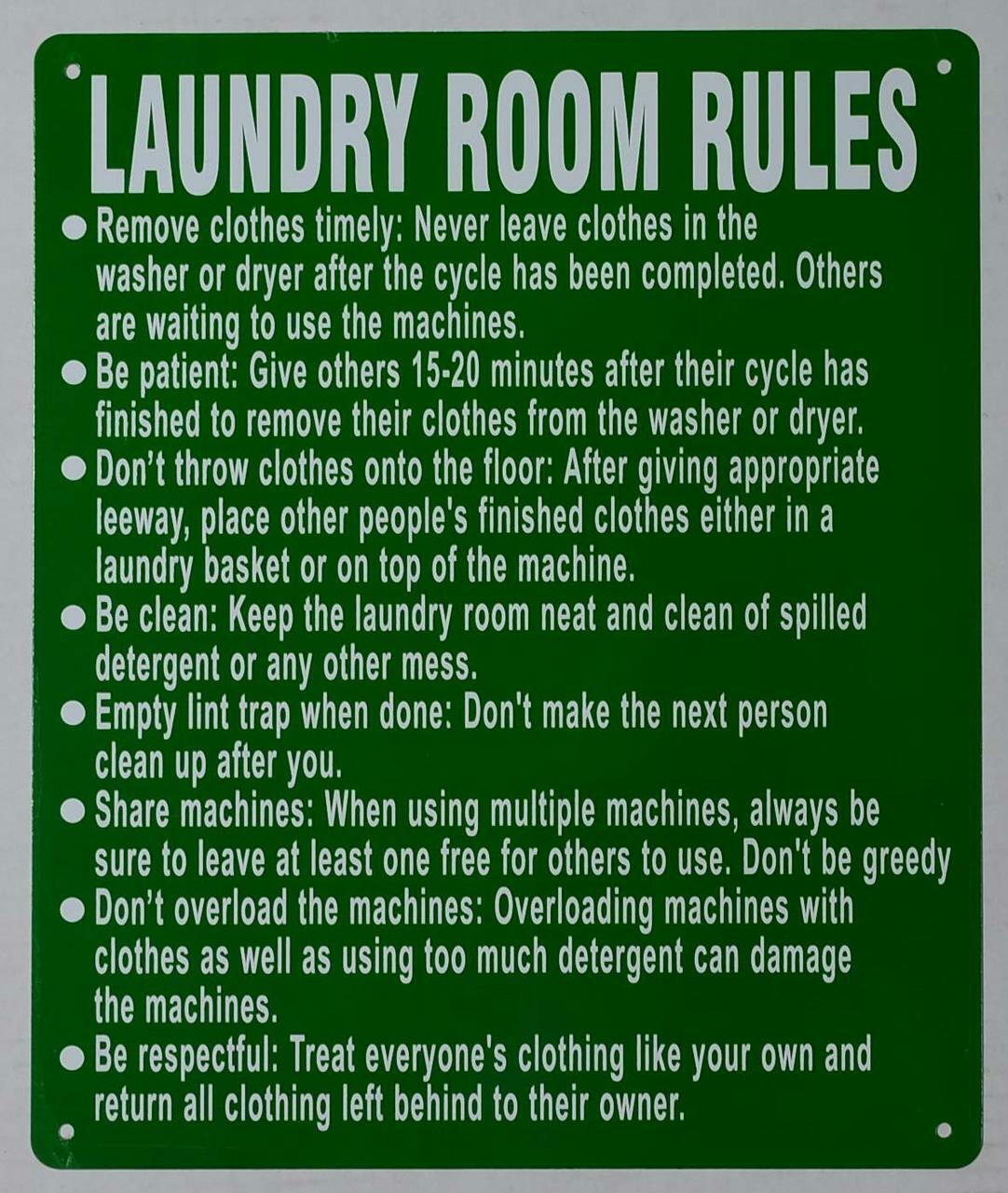 Laundry Room Rules Sign Green, Rust Free Aluminium 10X12 -REF24-1027