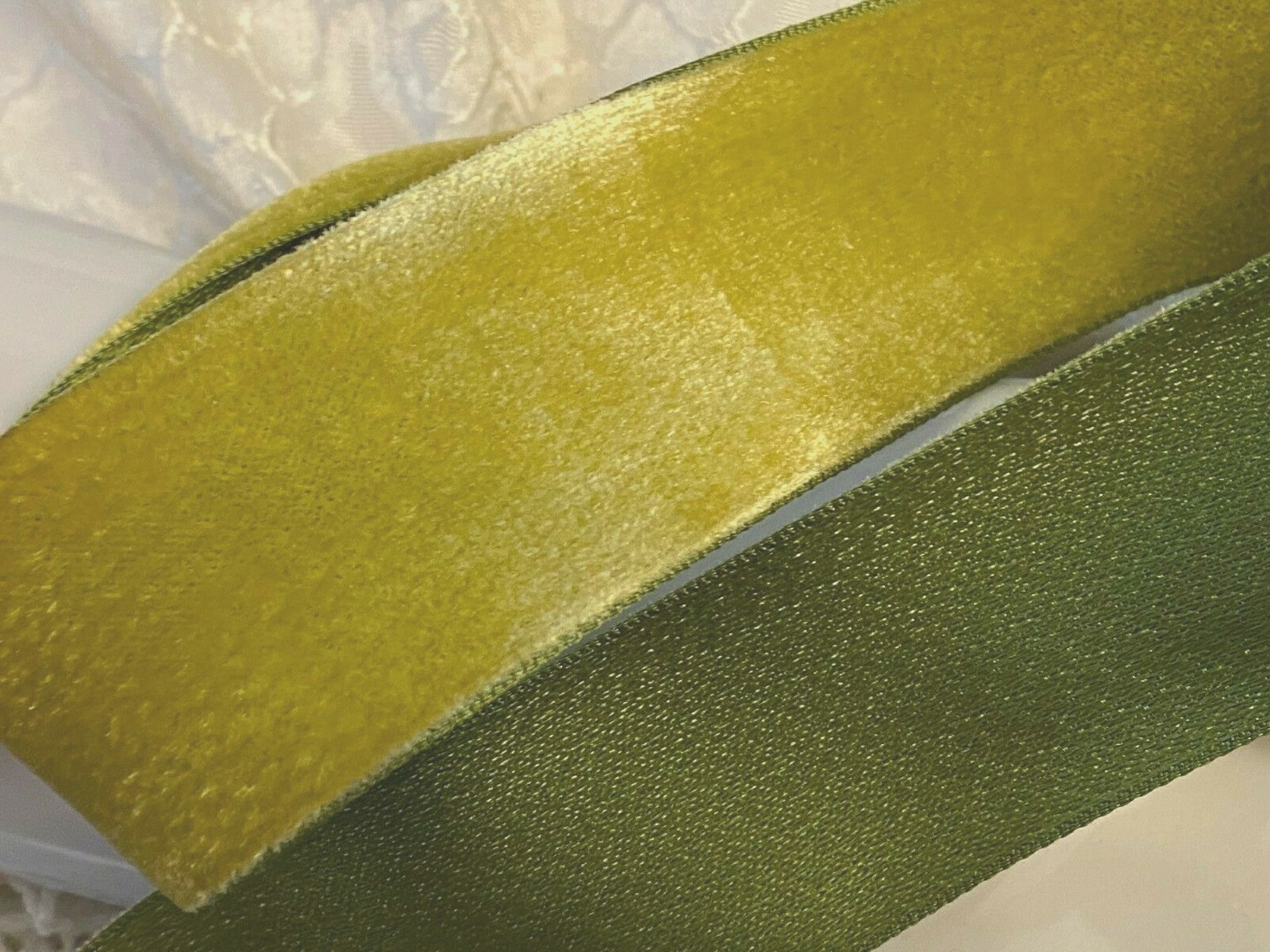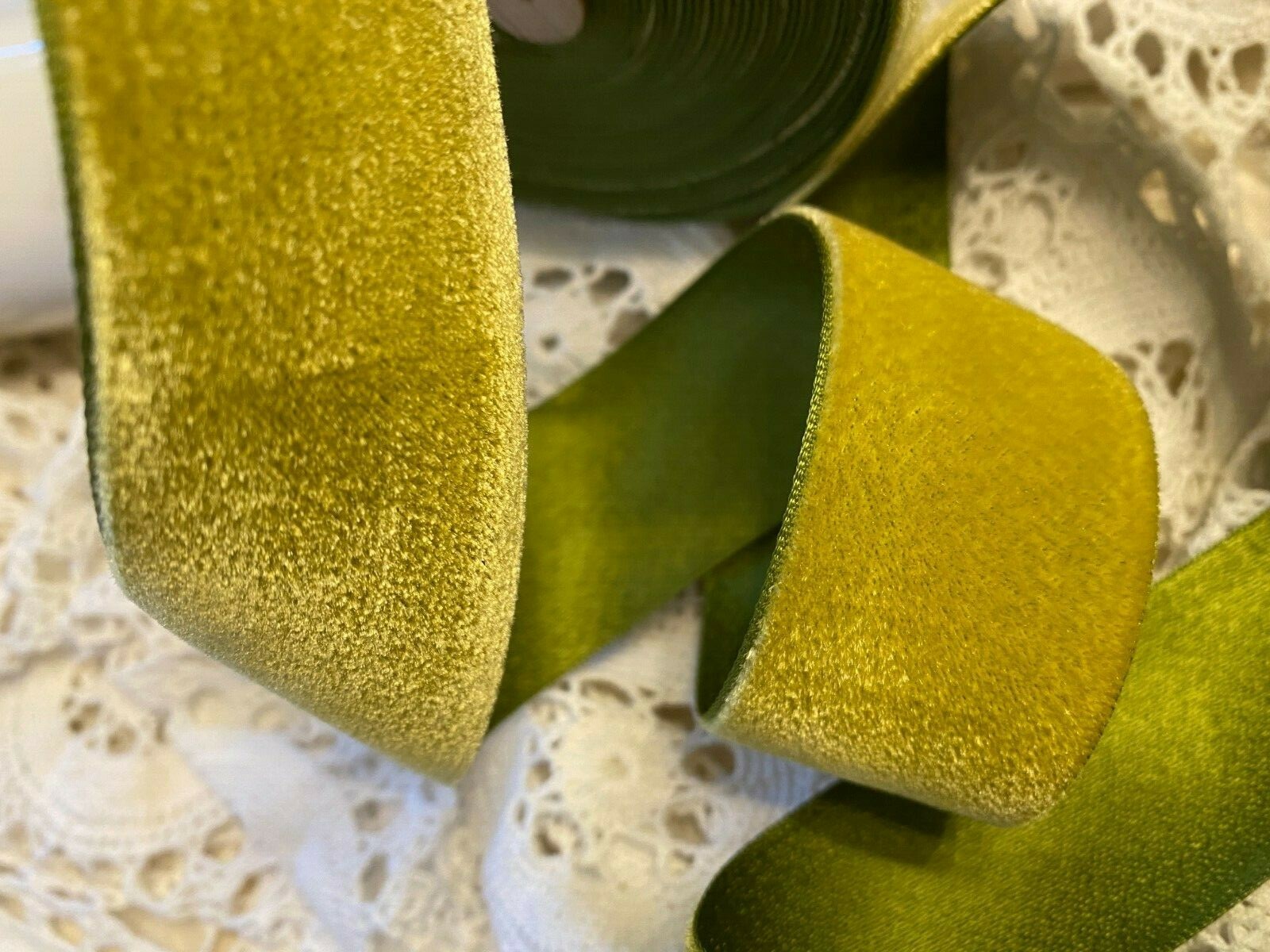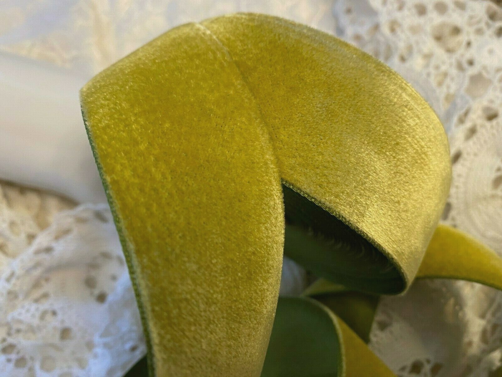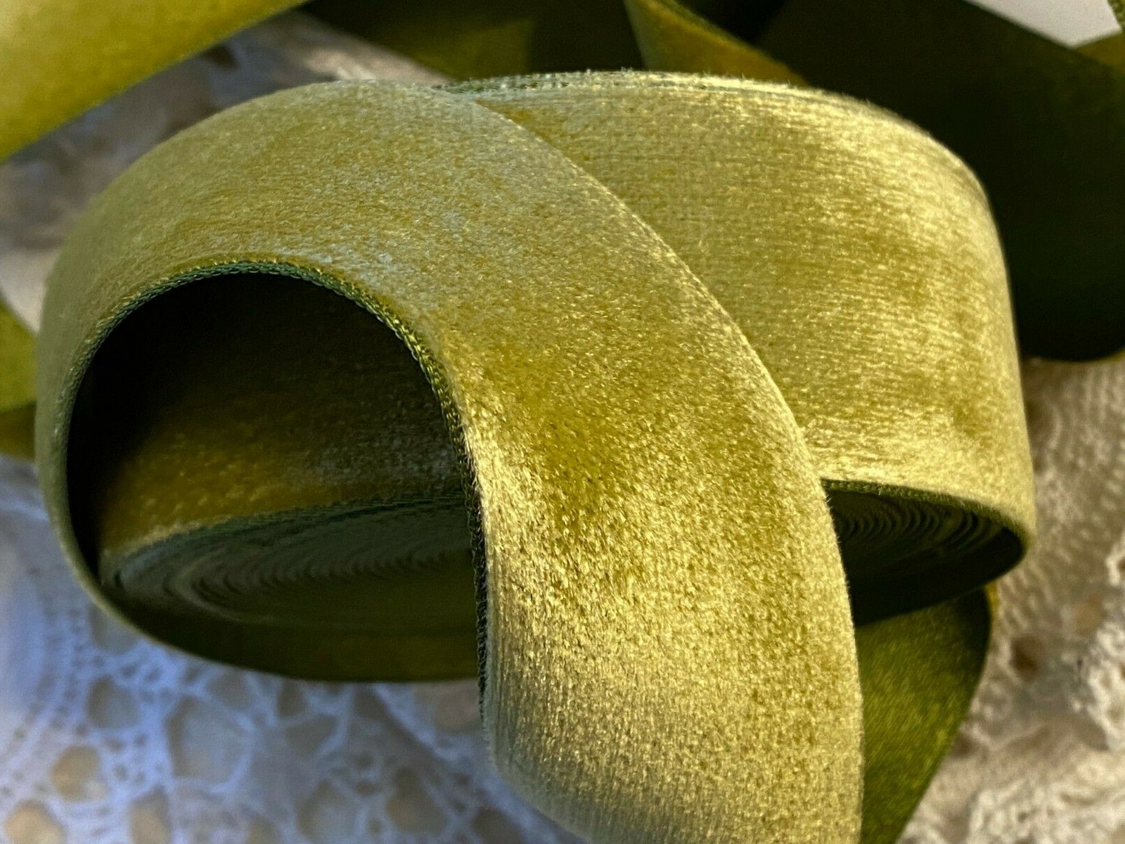 vintage velvet rayon satin back ribbon 1.5 saffron moss 1yd made in France
